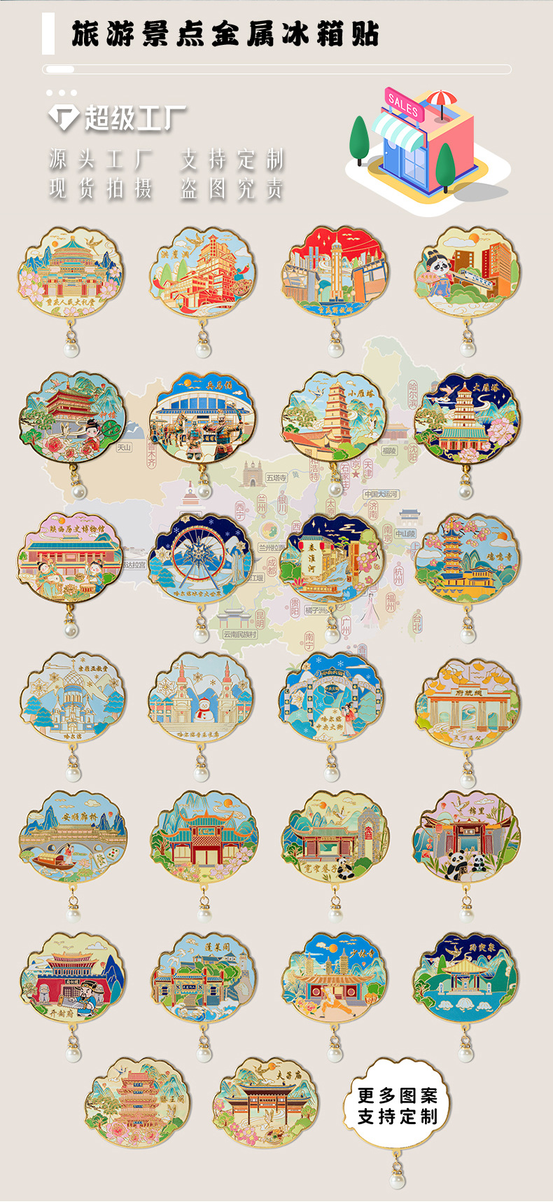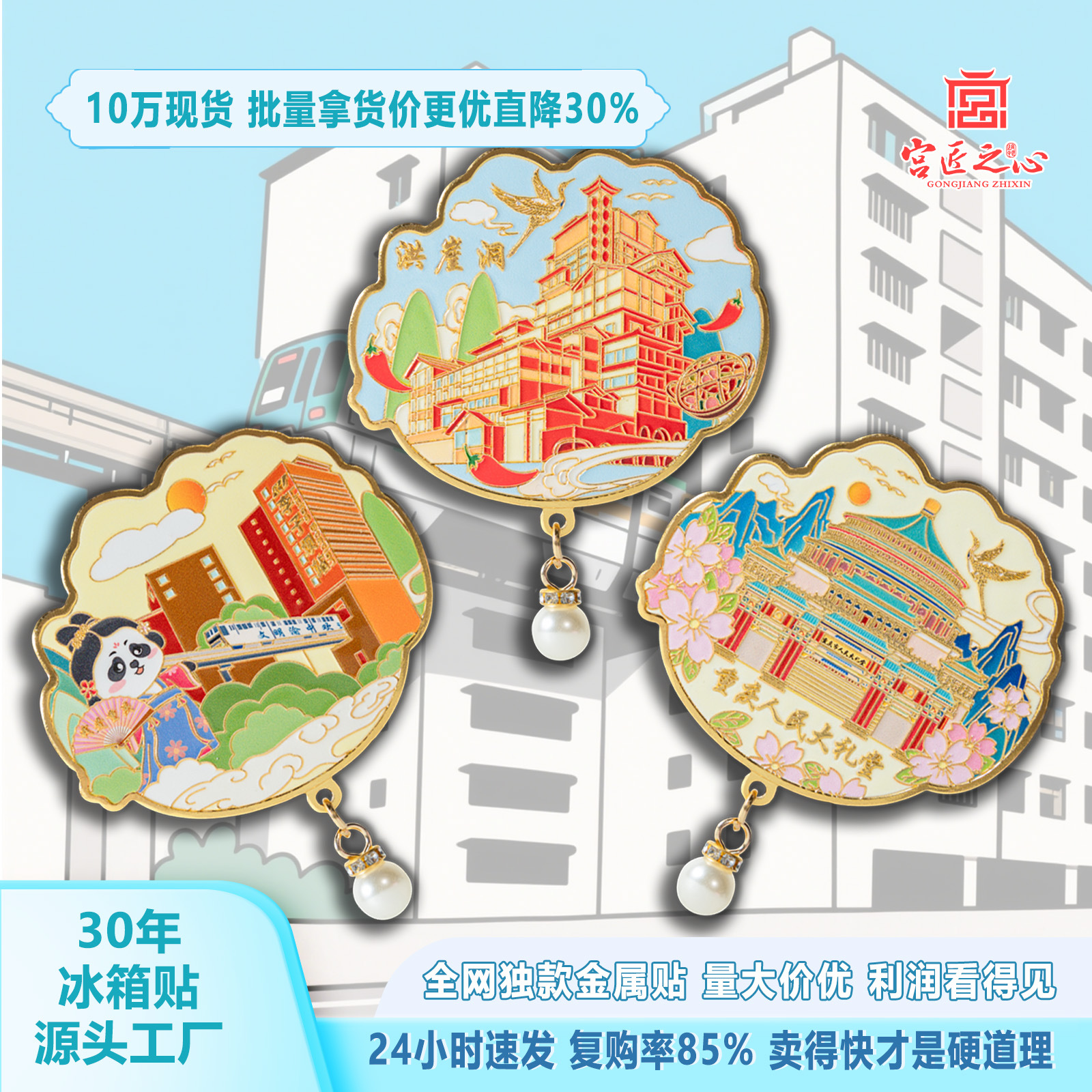 金属冰箱贴中国城市旅游西安成都山东重庆文创纪念品磁吸挂件礼品