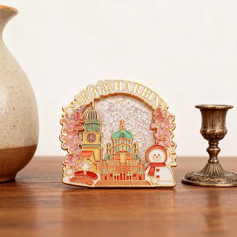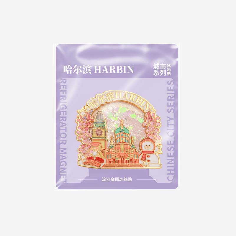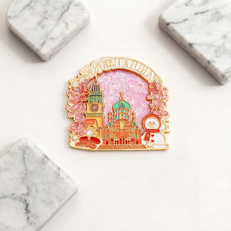 哈尔滨流沙文创冰箱贴中国城市金属旅游创意冰箱贴定做索菲亚教堂
