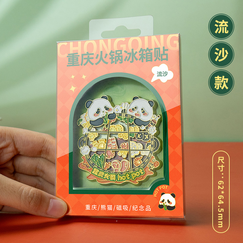 金属城市冰箱贴熊猫花花可爱装饰国潮中国风成都文创旅游纪念品