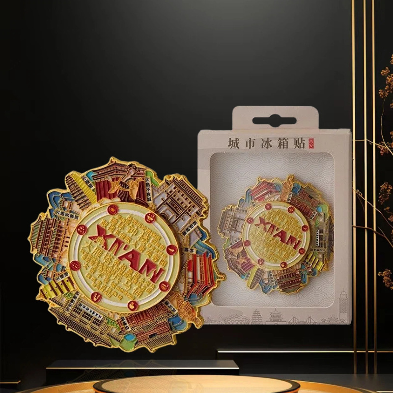 西安系列可旋转冰箱贴中国城市旅游纪念品景区地标文创金属冰箱贴