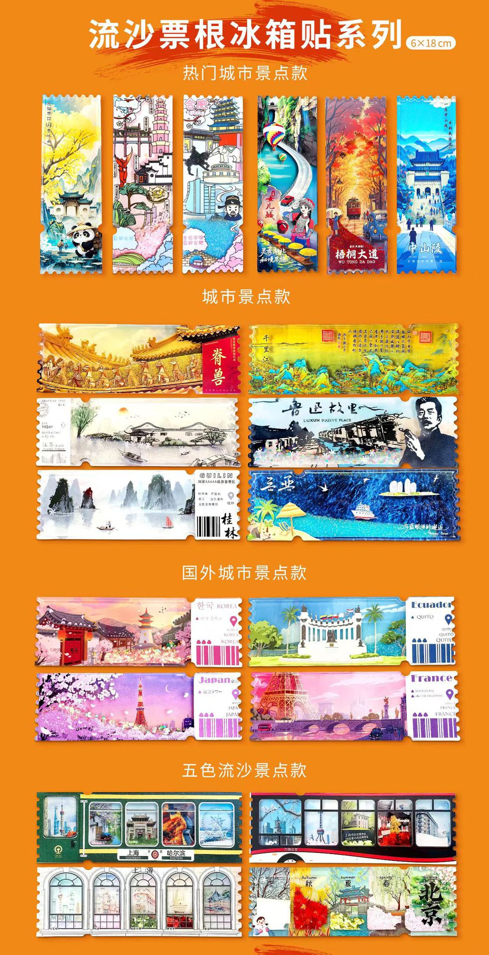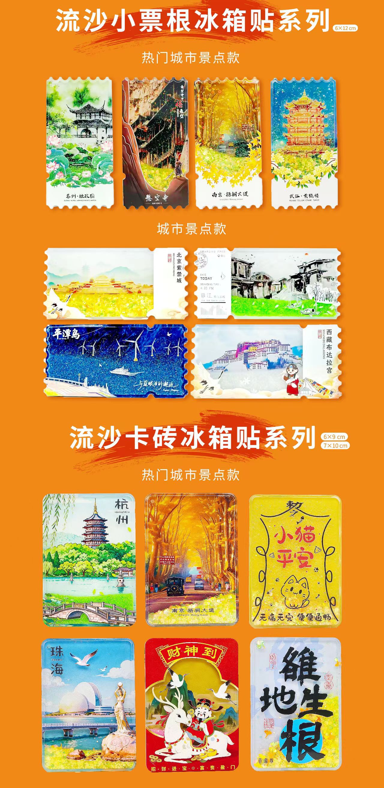 北京旅游冰箱贴中国城市文创流沙冰箱贴亚克力故宫熊猫西安徽苏州