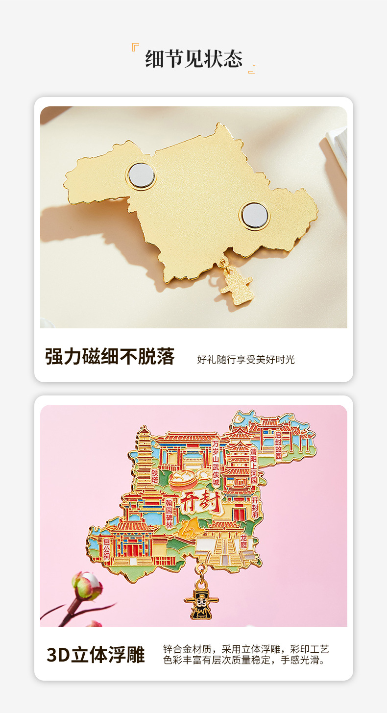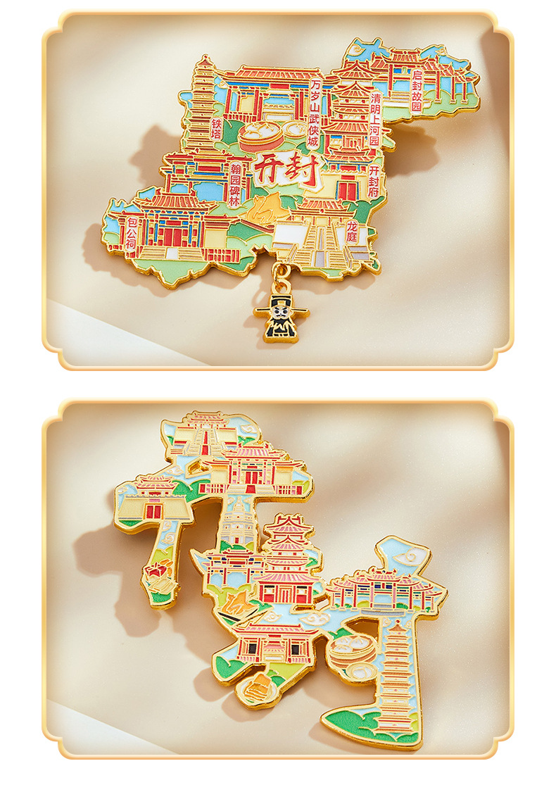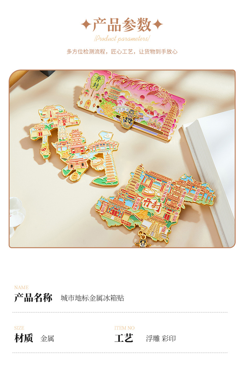 文创城市冰箱贴开封景点中国风旅行纪念品地标卡通立体冰箱磁吸贴