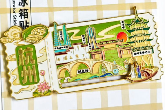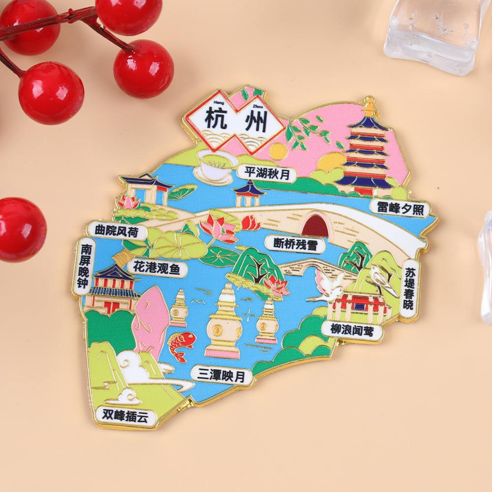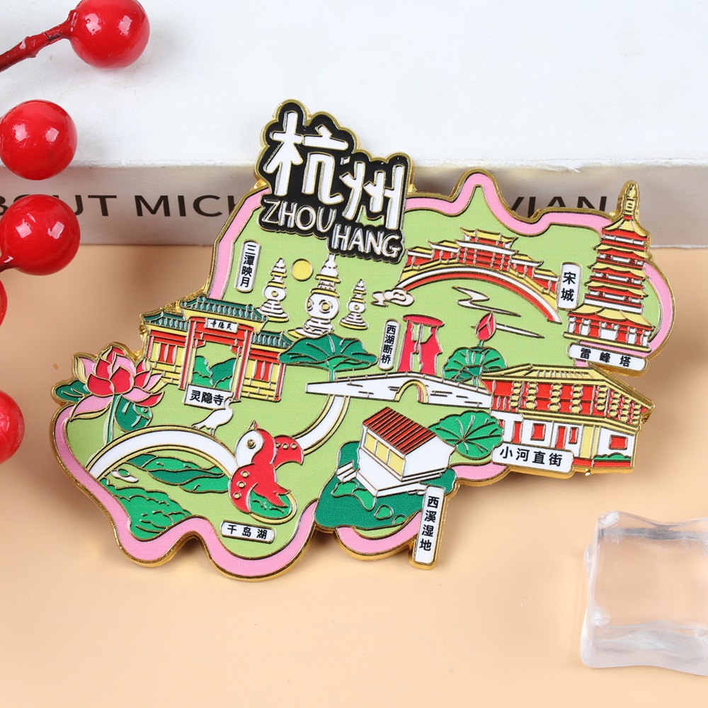 现货金属冰箱贴中国城市浙江景区旅游杭州嵊州洞头西湖灵隐寺