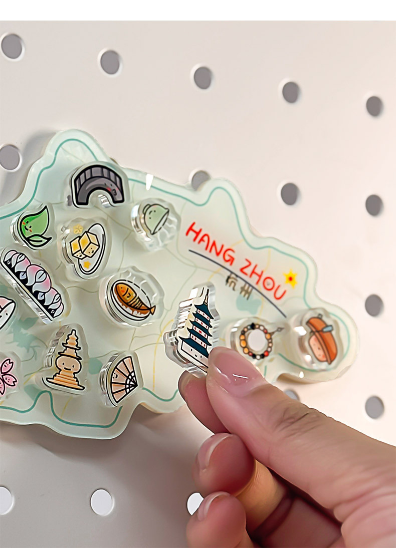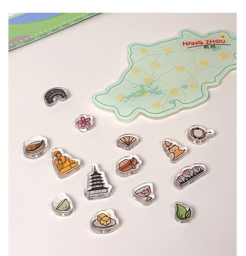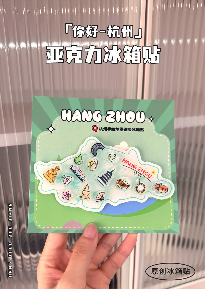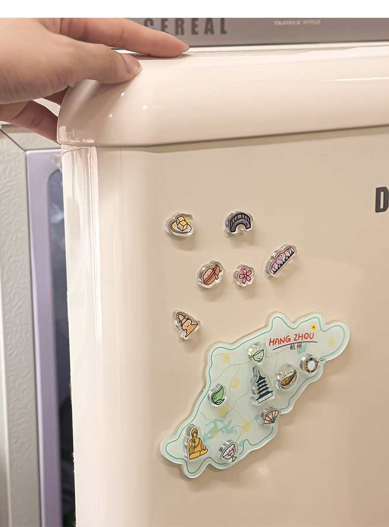 杭州冰箱贴定制亚克力中国城市地图文创卡通磁力贴立体纪念磁吸贴