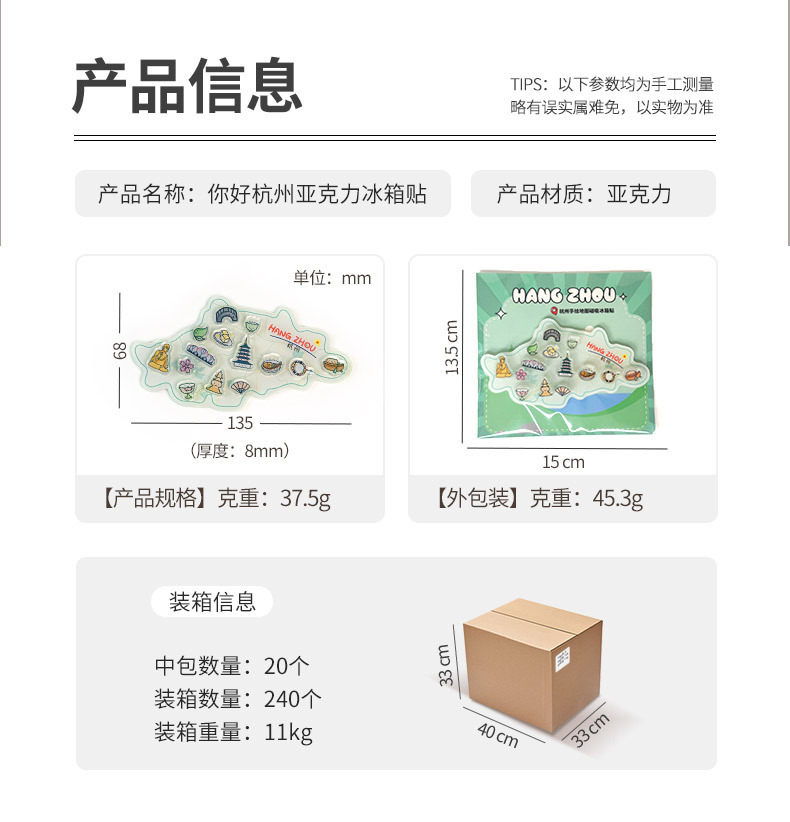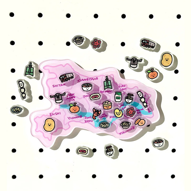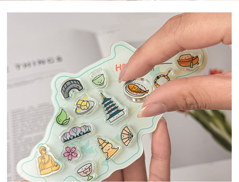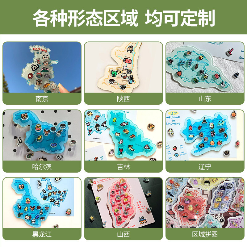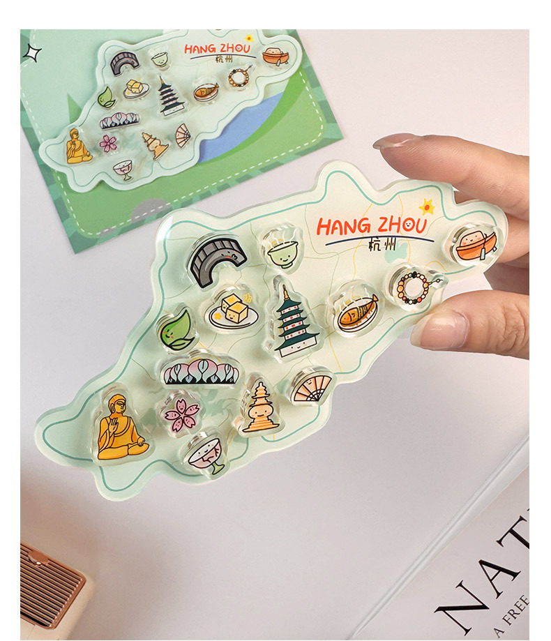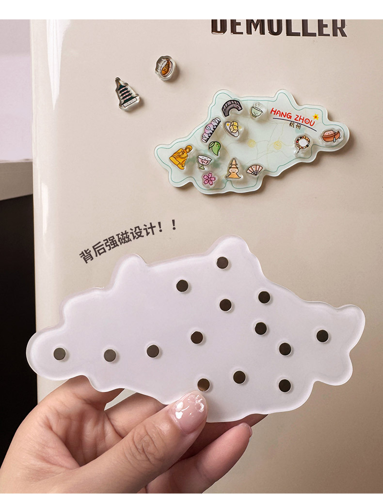 杭州冰箱贴定制亚克力中国城市地图文创卡通磁力贴立体纪念磁吸贴