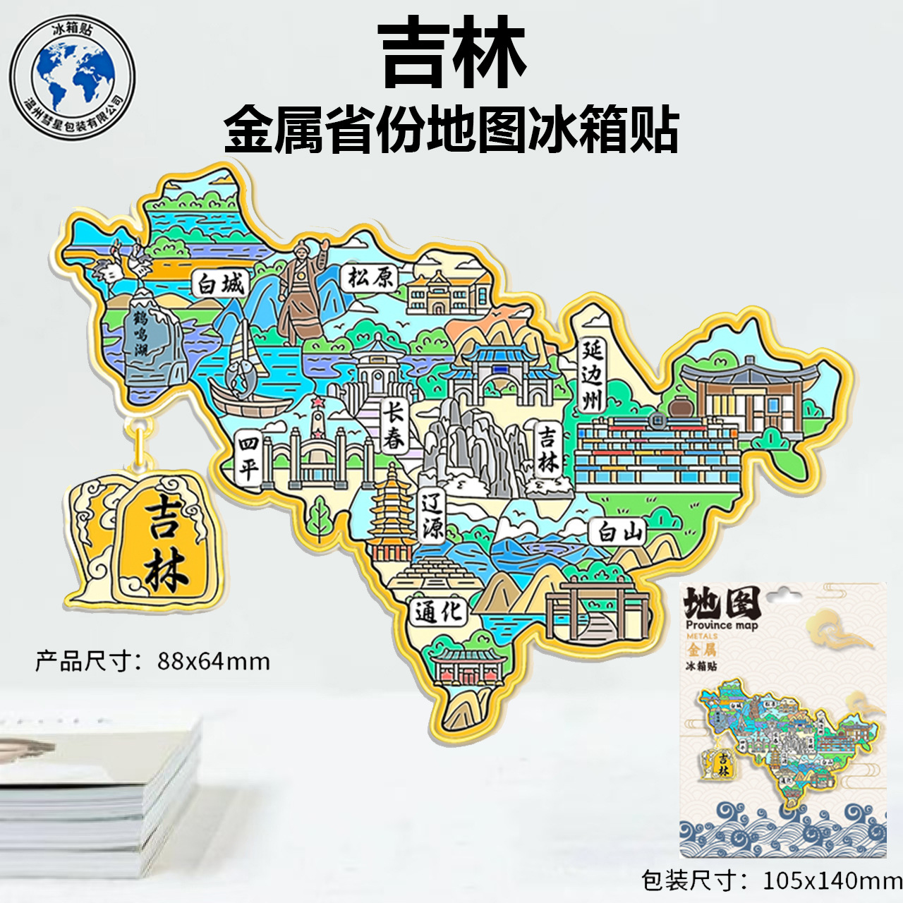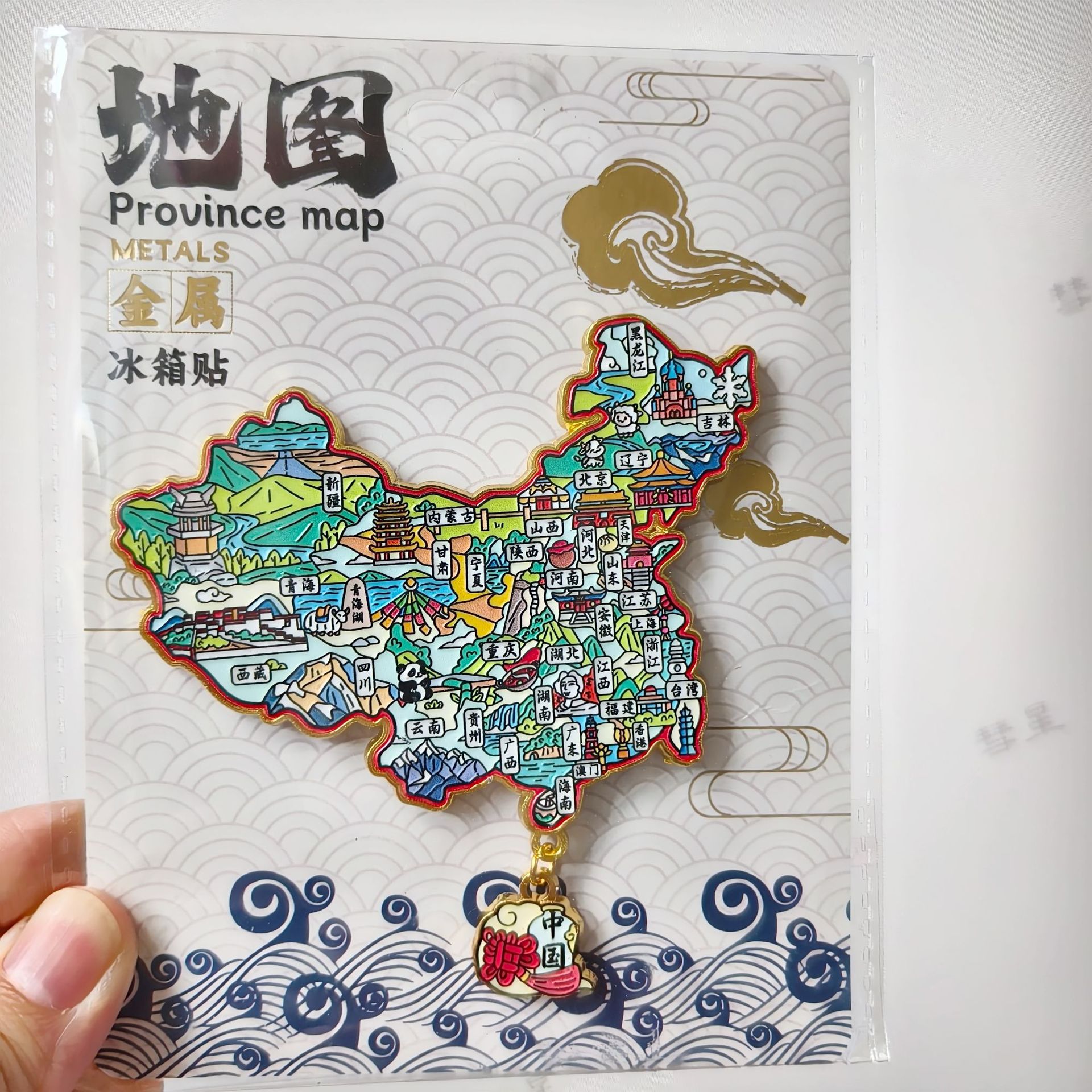 金属地图合集中国省份城市文创磁吸创意旅游纪念品创意金属冰箱贴