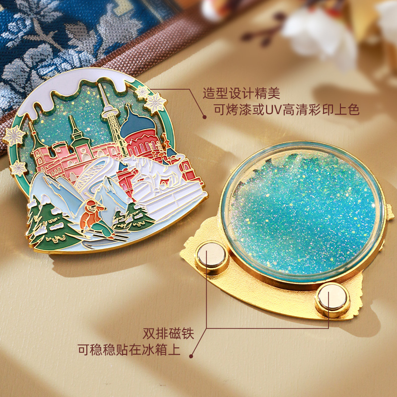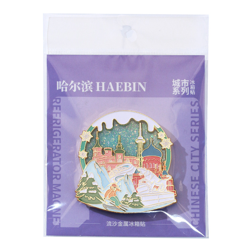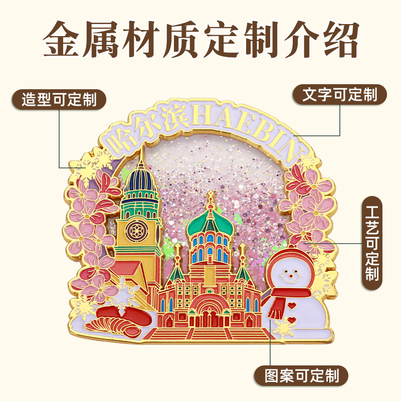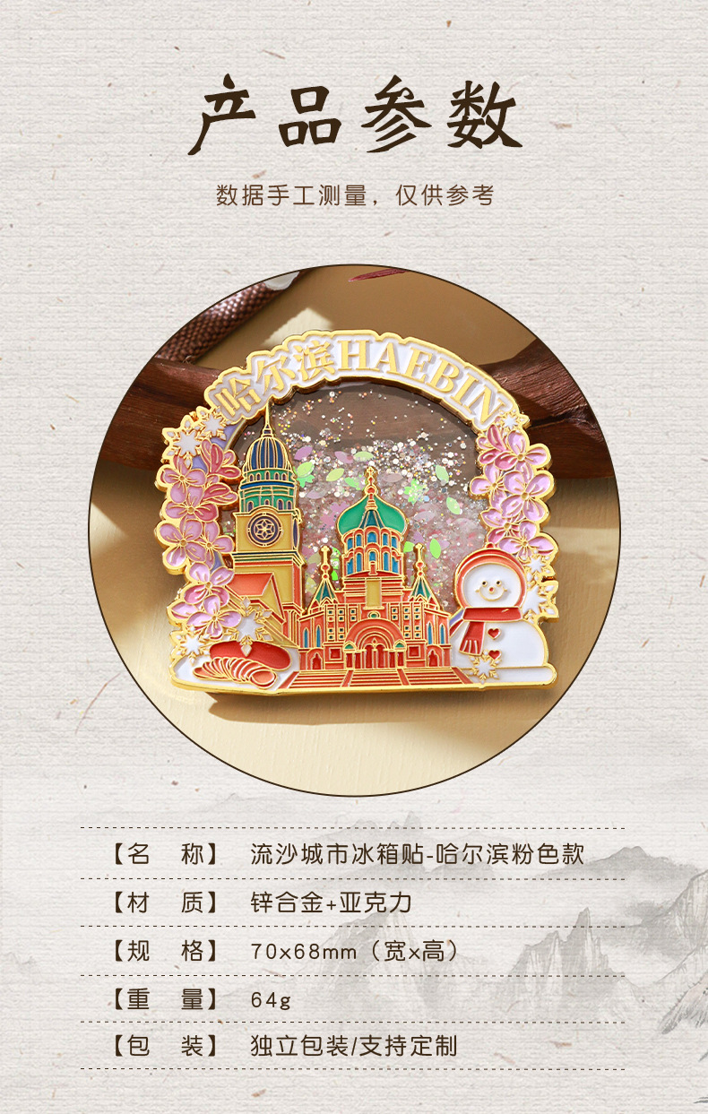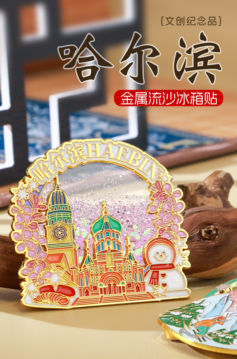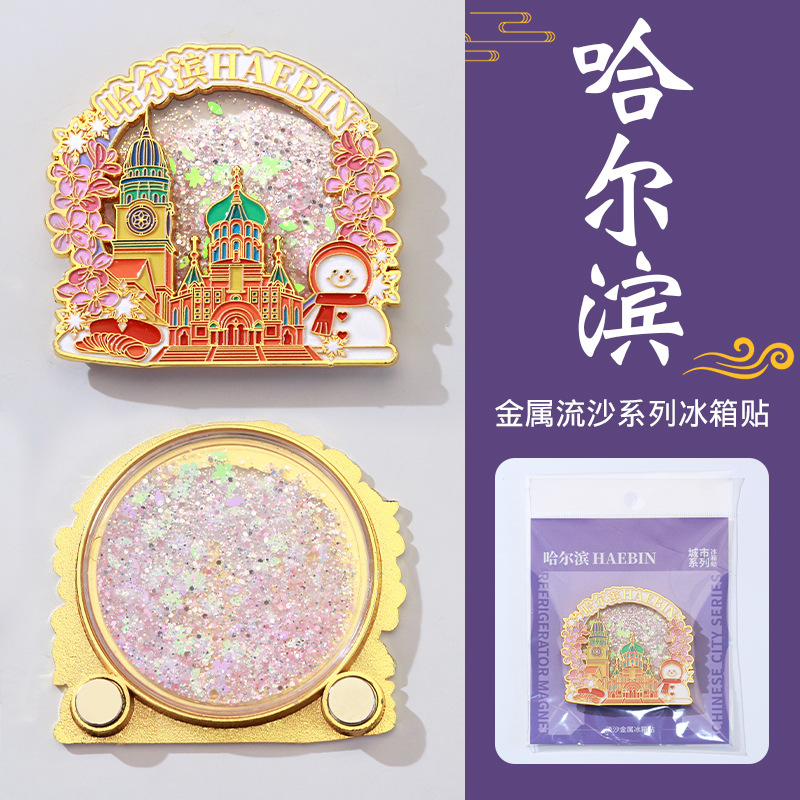 哈尔滨冰箱贴定制中国城市金属流沙冰雪大世界文创冰箱创纪念品
