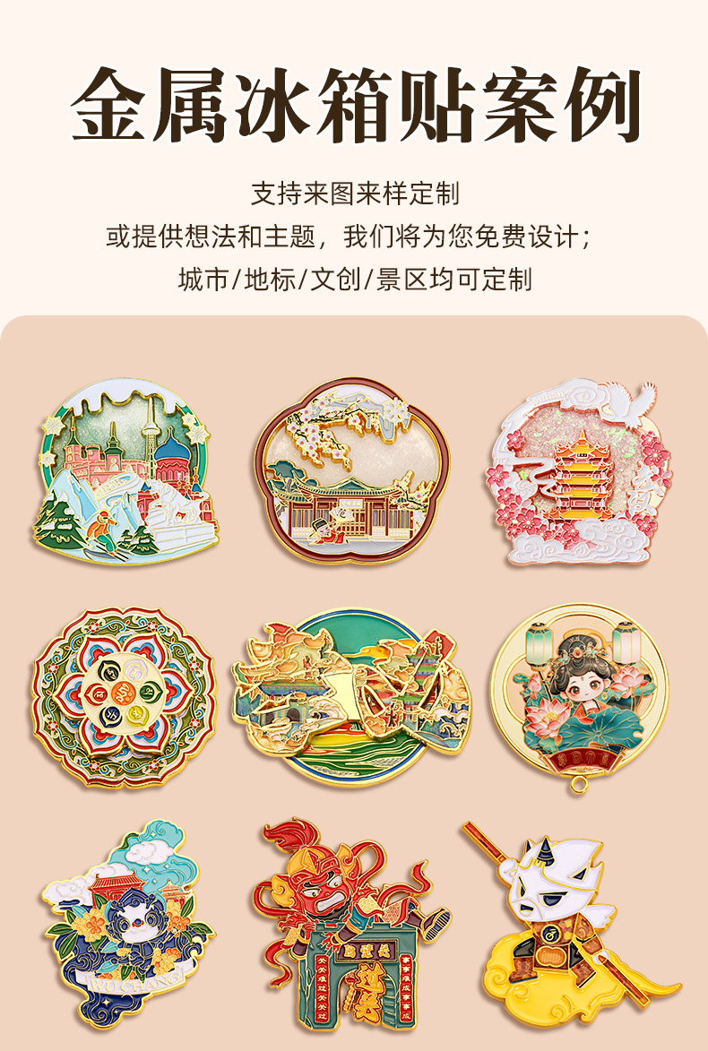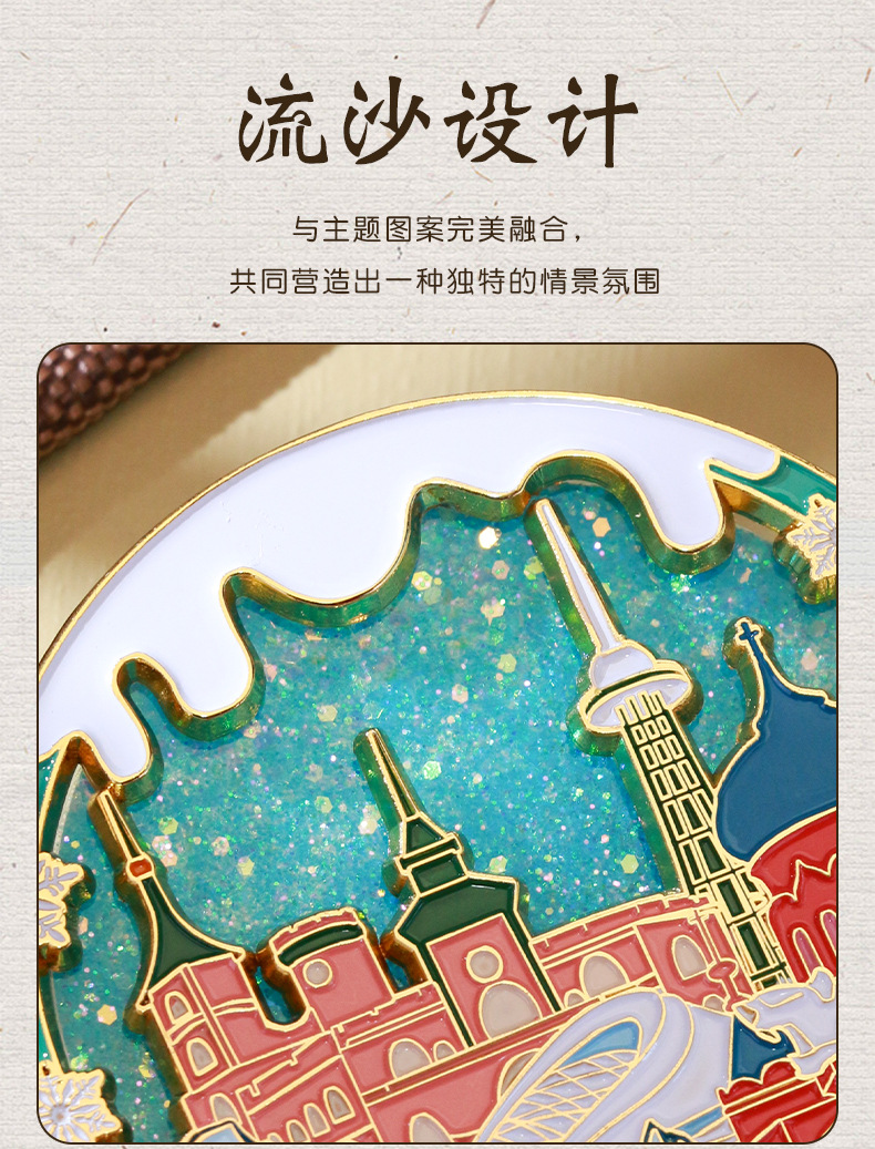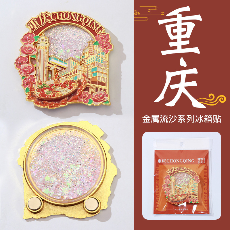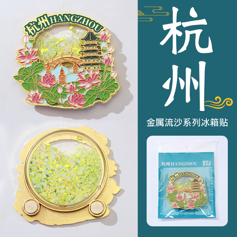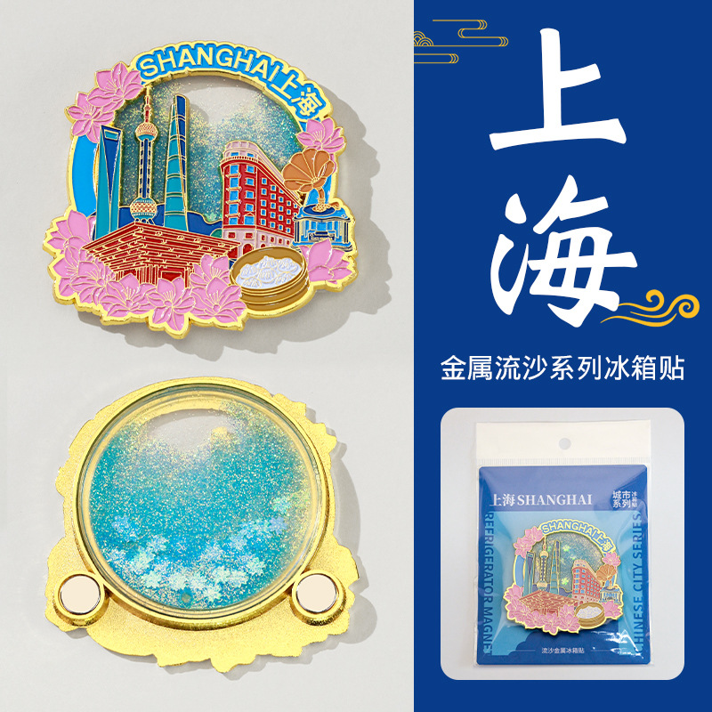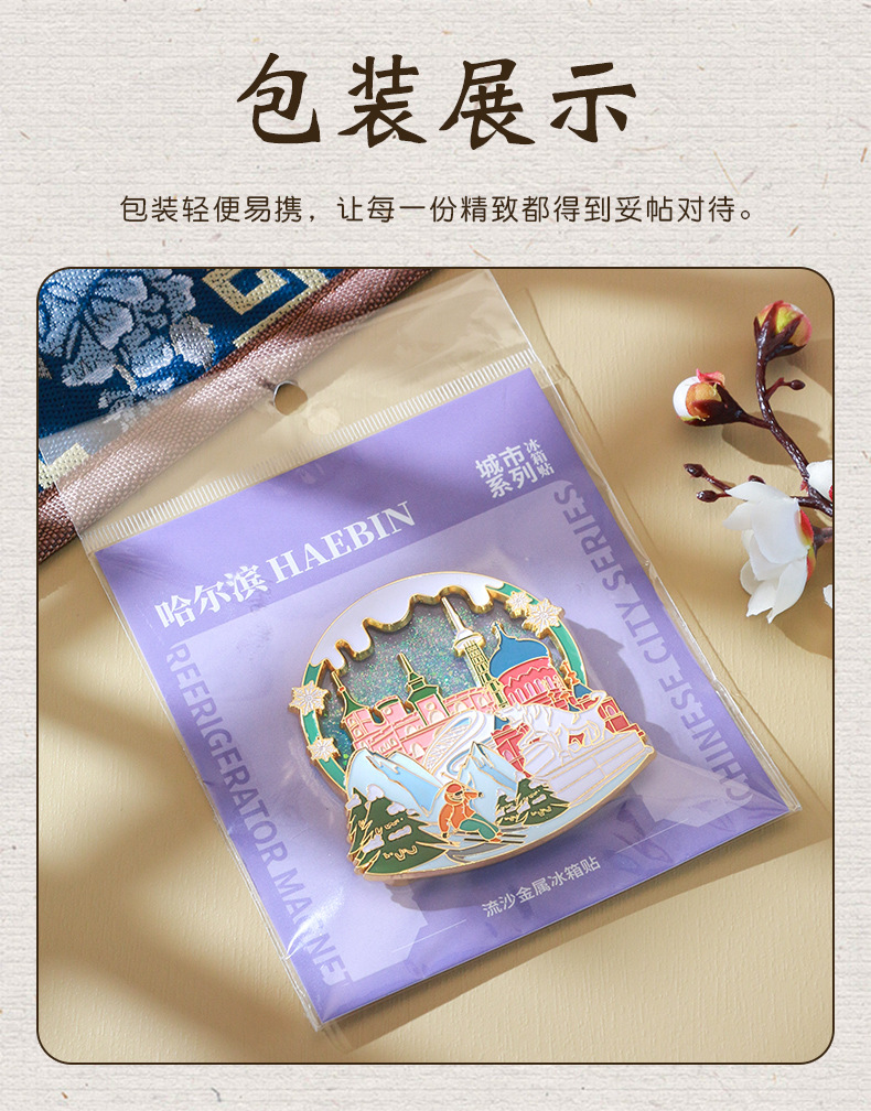 哈尔滨冰箱贴定制中国城市金属流沙冰雪大世界文创冰箱创纪念品