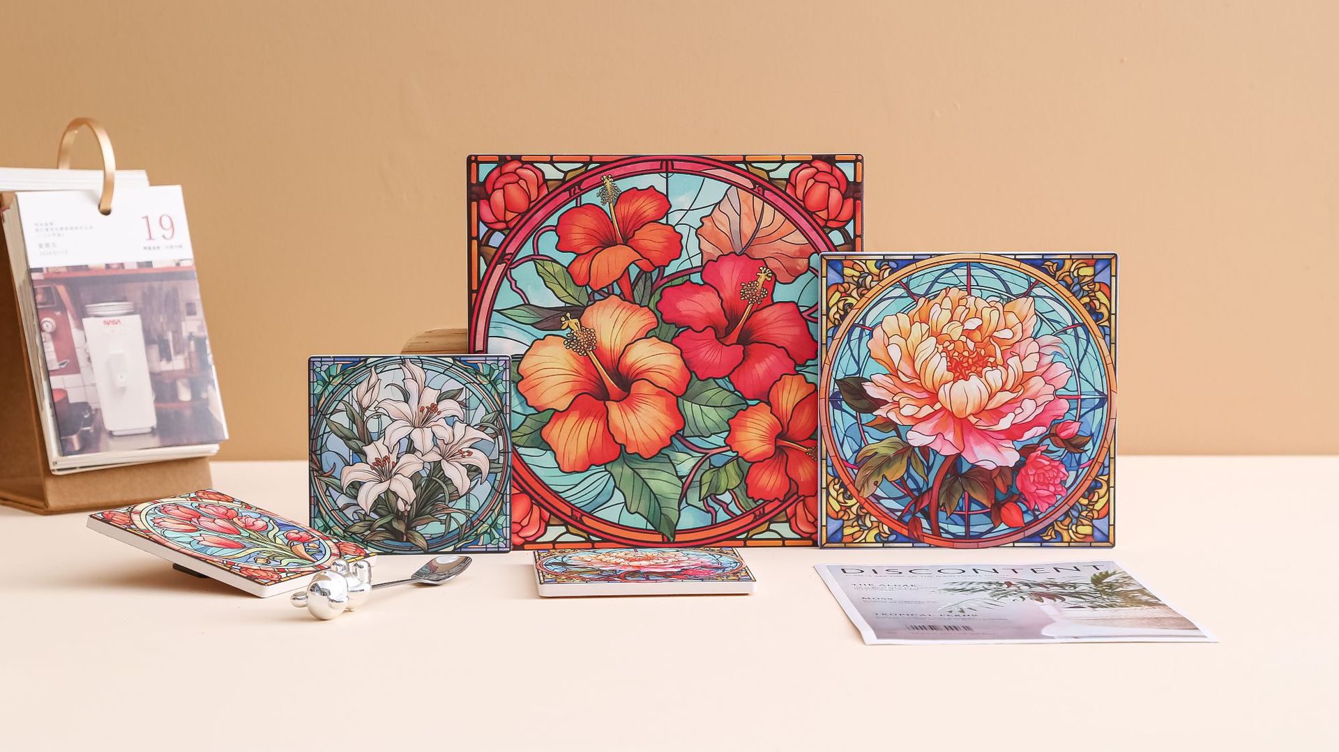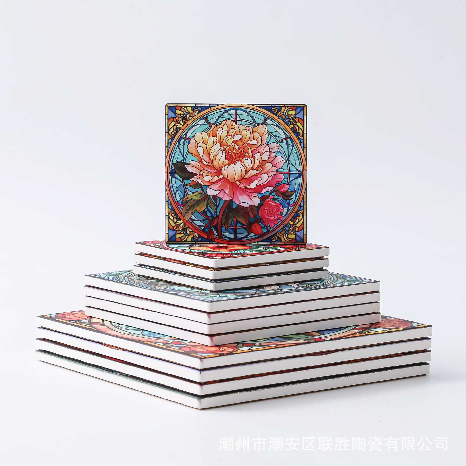 复古花砖陶瓷冰箱贴创意批发方形diy吸水UV印刷 闽南情怀东南亚风
