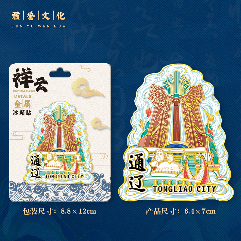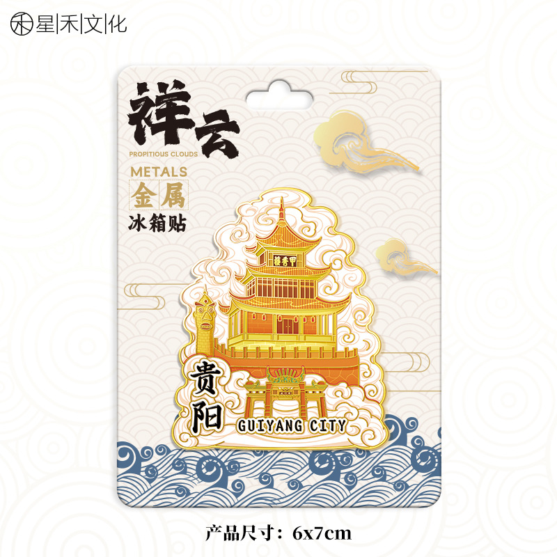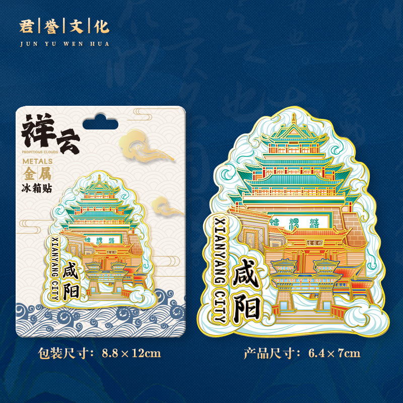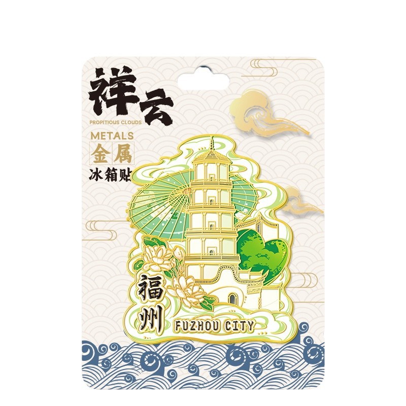 祥云款金属文创磁吸城市冰箱贴现货锌合金地标建筑旅游纪念品定制