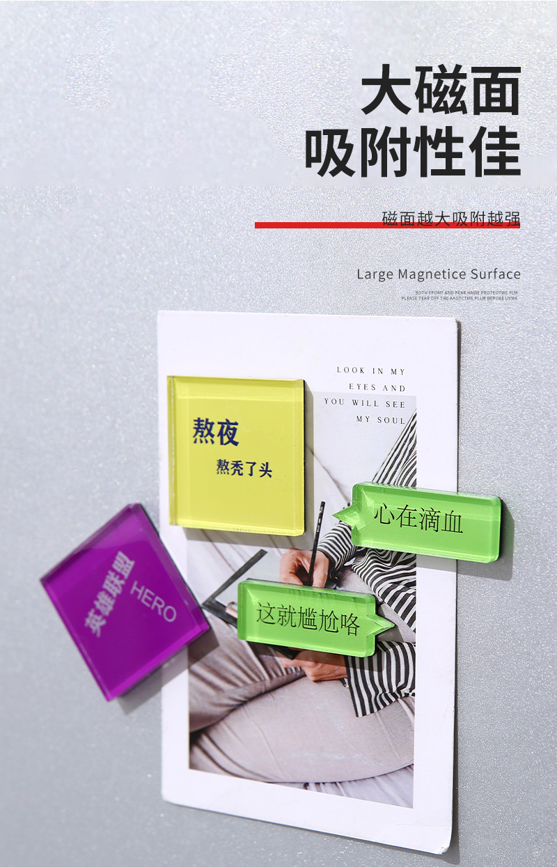 网络热梗亚克力冰箱贴个性文字磁力贴diy冰箱贴定制留言备忘录贴