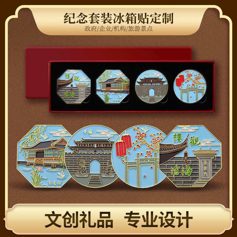 金属冰箱贴定制设计城市建筑文创景区旅游纪念品金属磁吸徽章定制