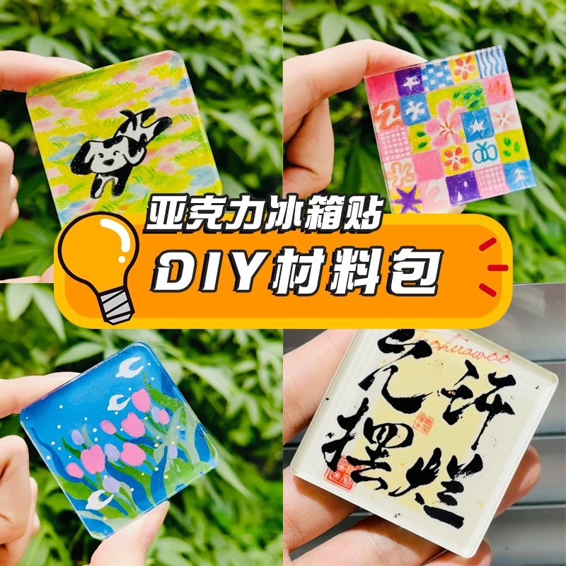 手工自制冰箱贴磁吸正方形带磁片透明ins亚克力diy圆形材料包配件