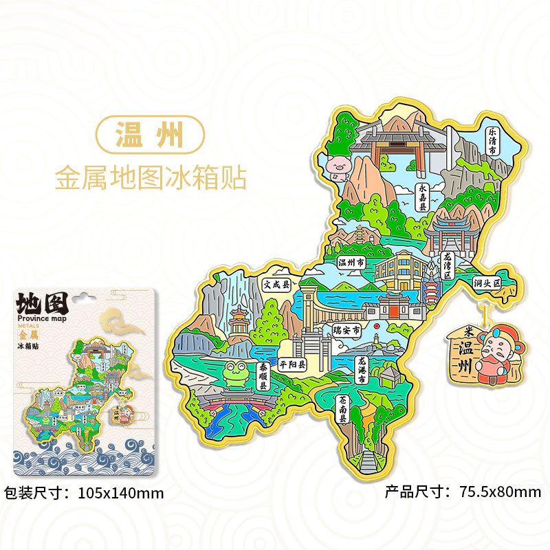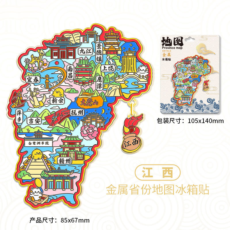 中国省会金属地图冰箱贴磁吸文创纪念品立体城市旅游景区抖音批发