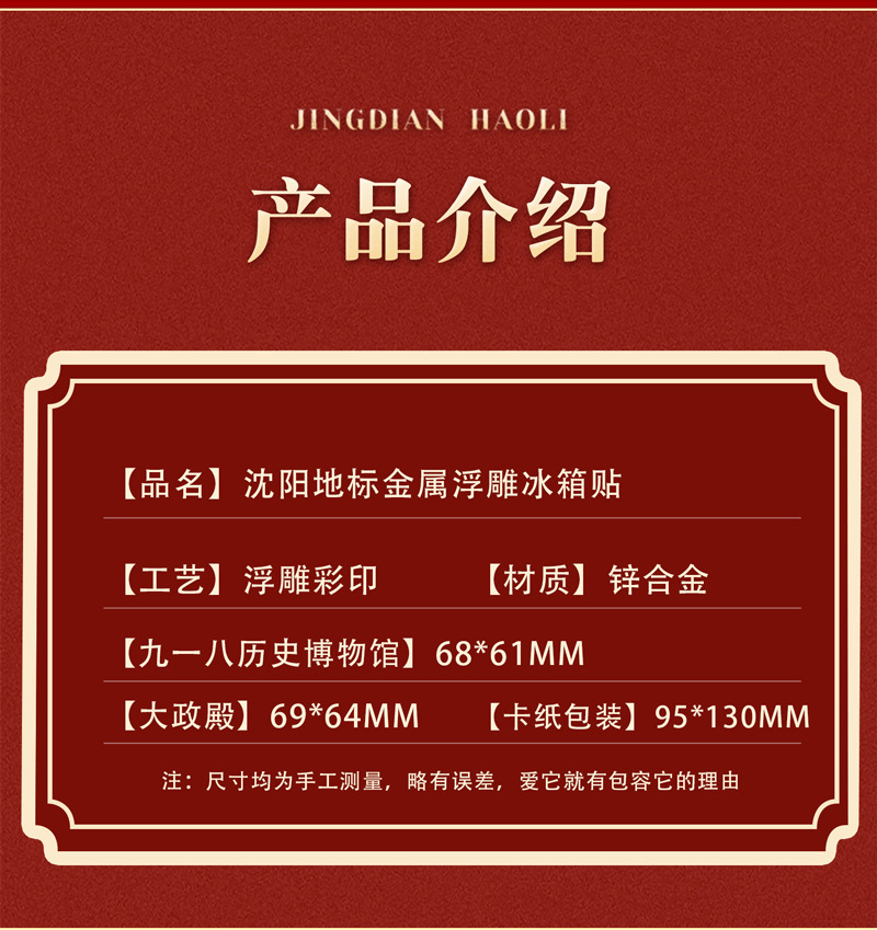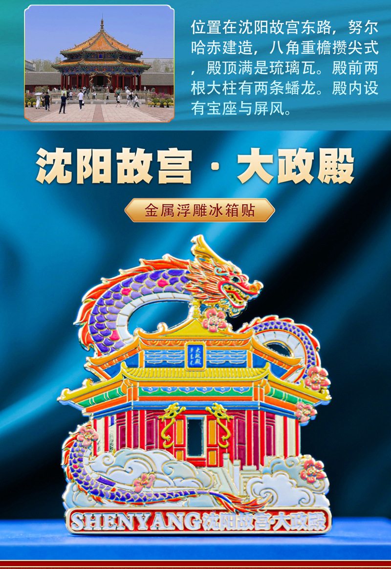 沈阳地标冰箱贴金属磁吸故宫大政殿中国风城市文创旅游纪念品礼物