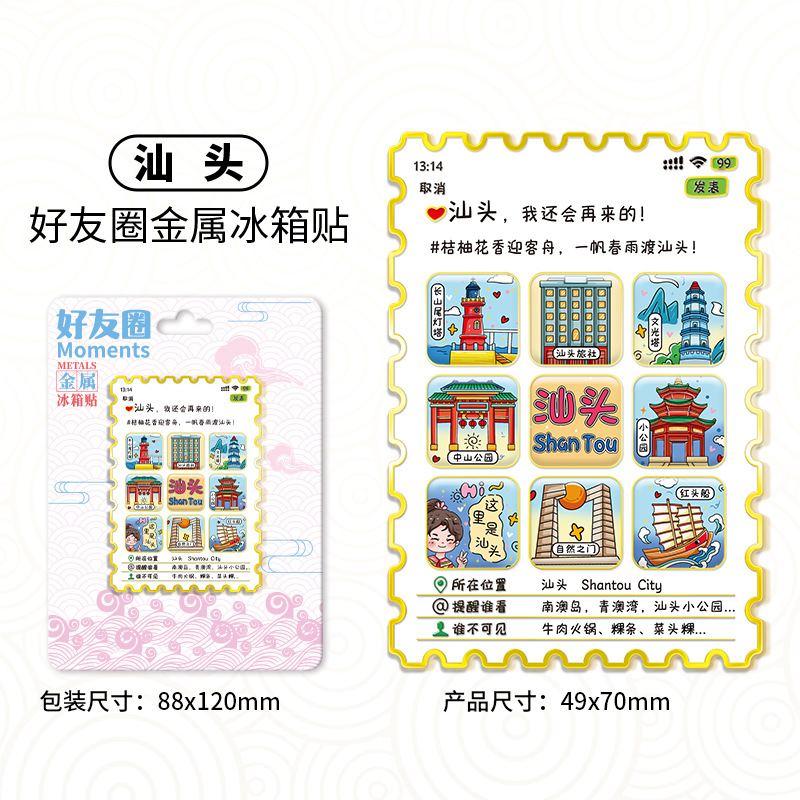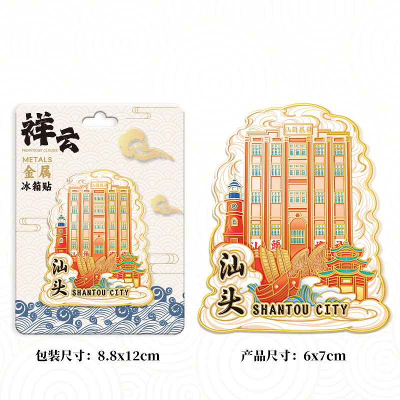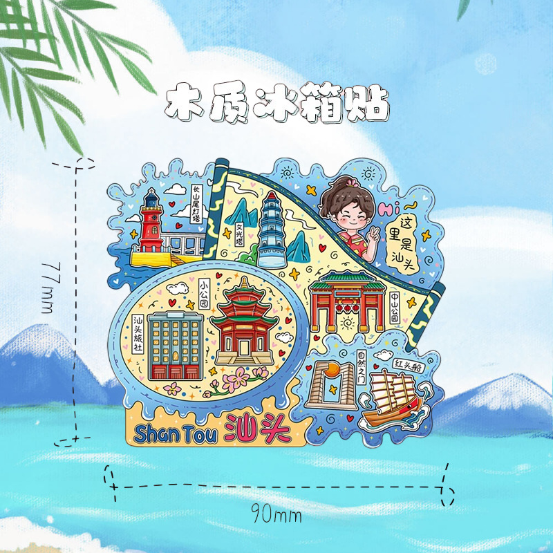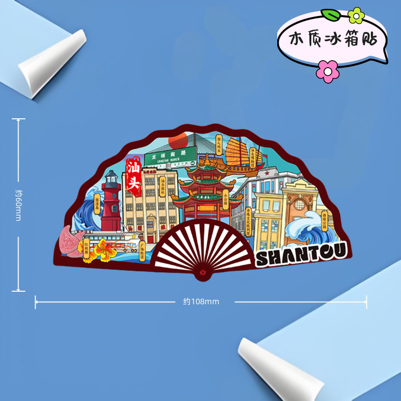 潮汕文化汕头元素木质金属冰箱贴旅游纪念品中国城市风装饰磁力贴