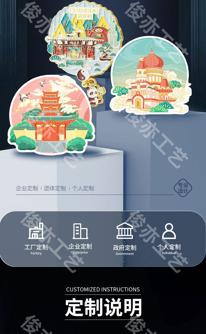 金属冰箱贴城市地标杭州南昌磁吸贴厦门云南贵州西安中国风纪念品