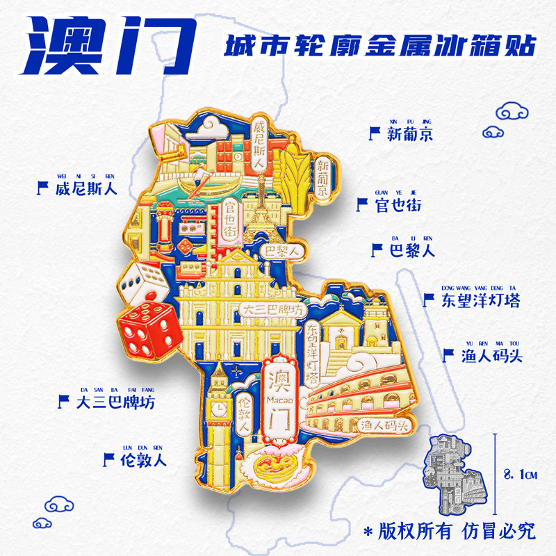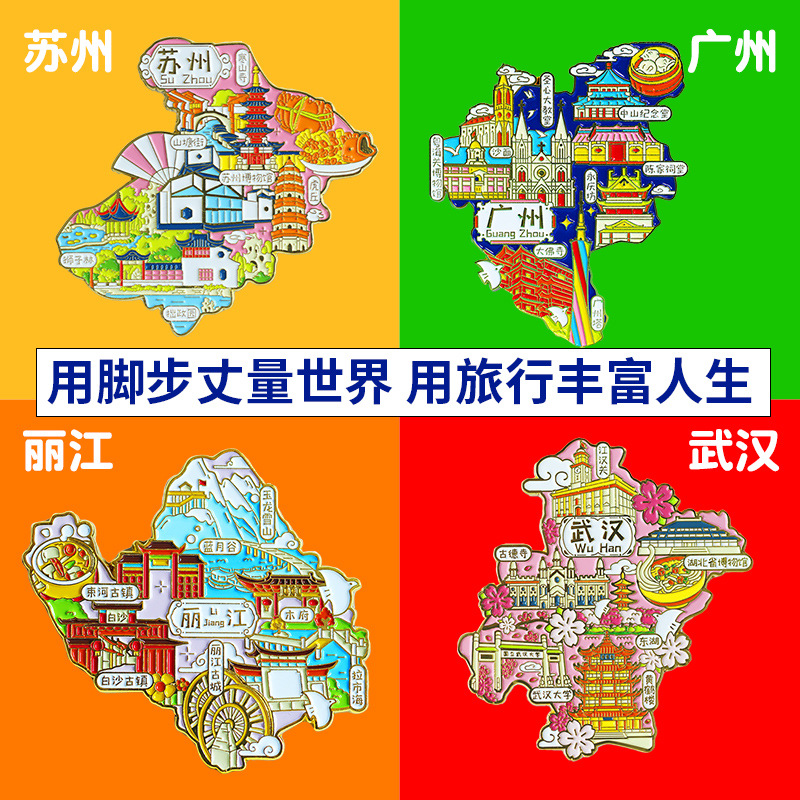 定制中国城市地图冰箱贴磁贴北京重庆长沙上海旅游金属工艺纪念品