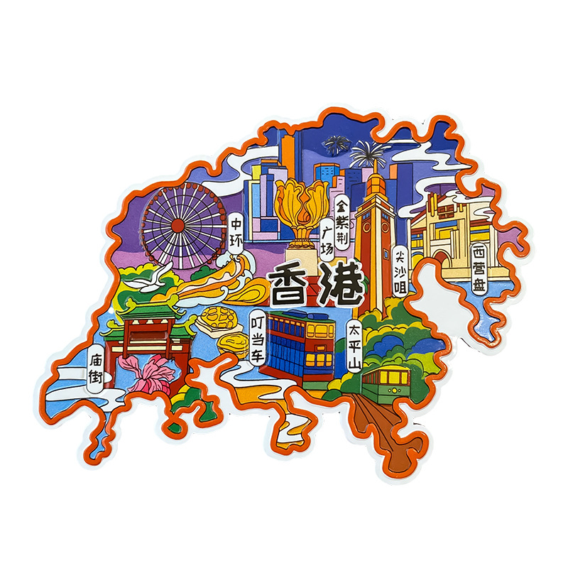 香港冰箱贴中国城市地图深圳广州珠海汕头厦门旅游景点金属文创U