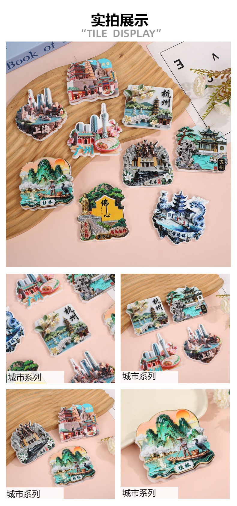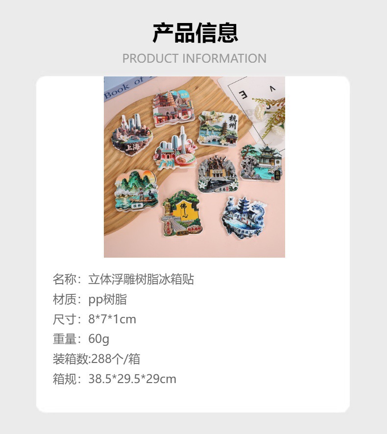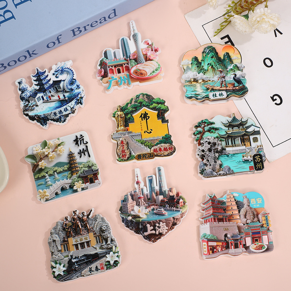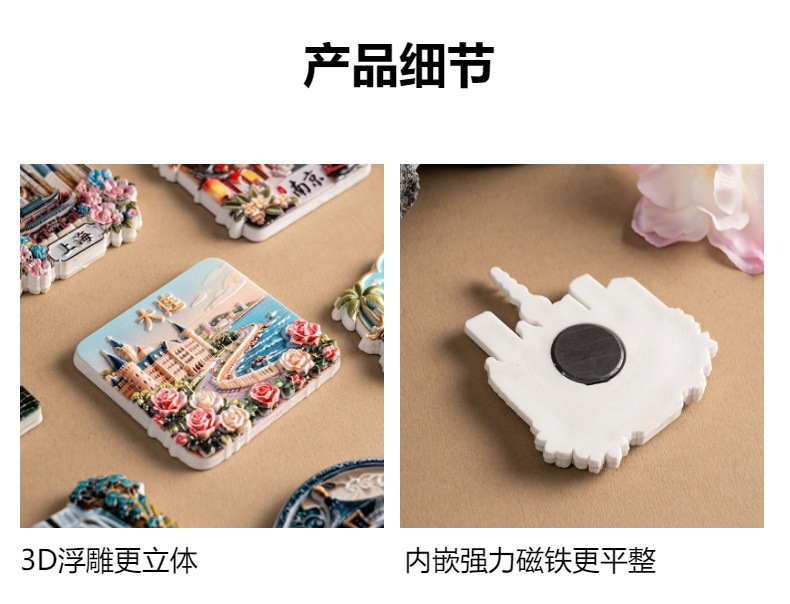 源头工厂树脂三亚上海旅游纪念中国城市磁吸冰箱贴文创礼品采购