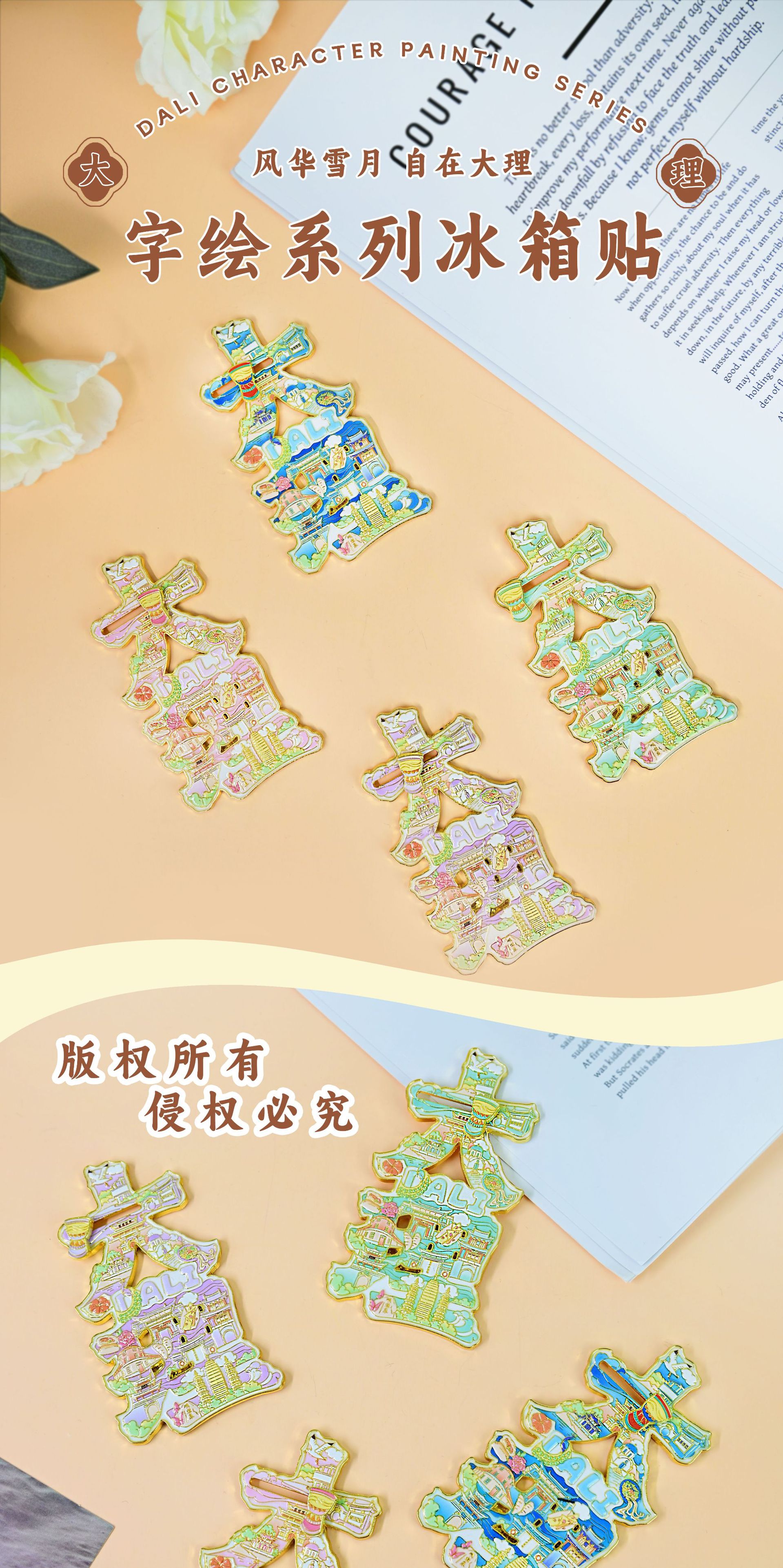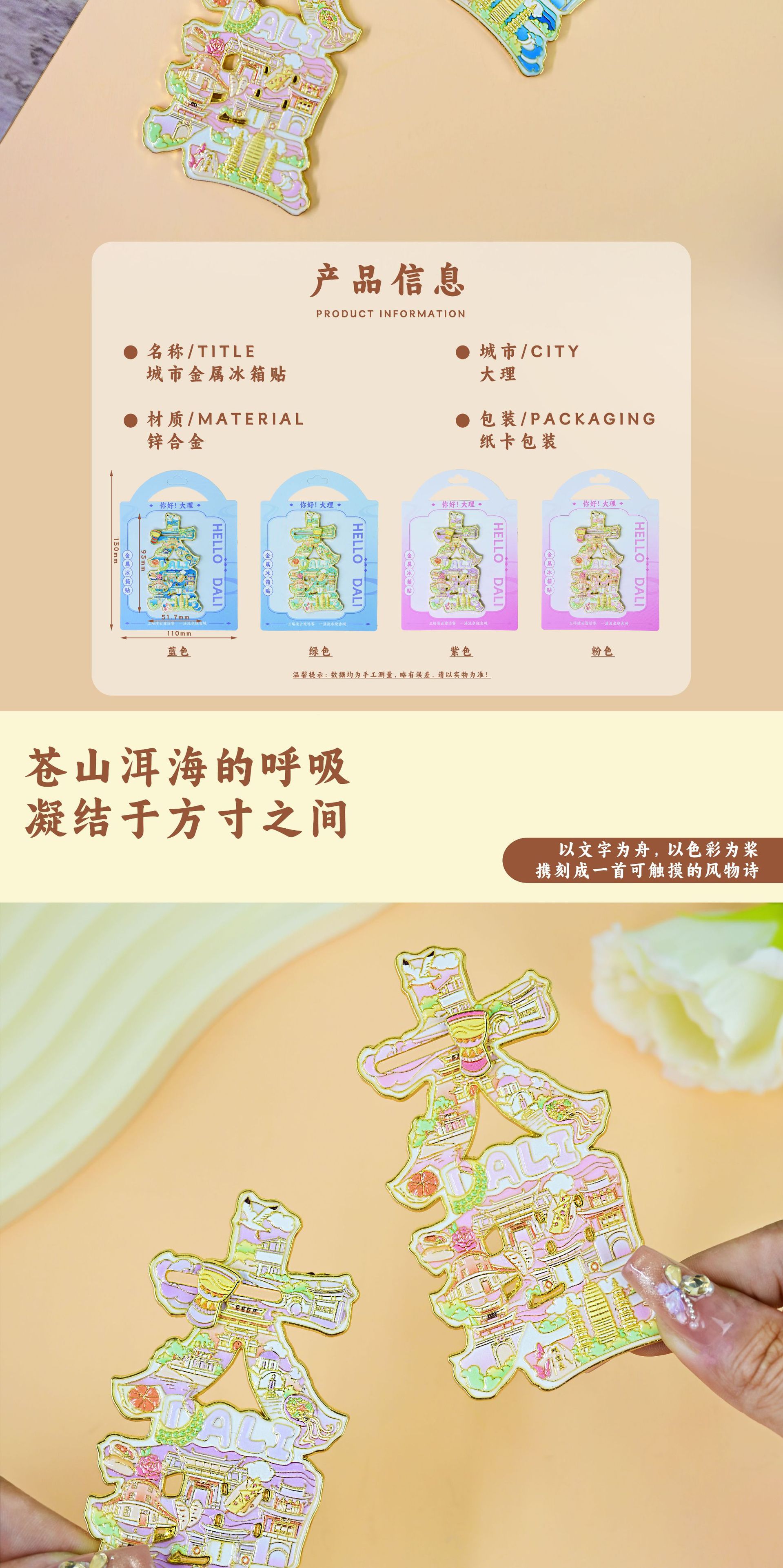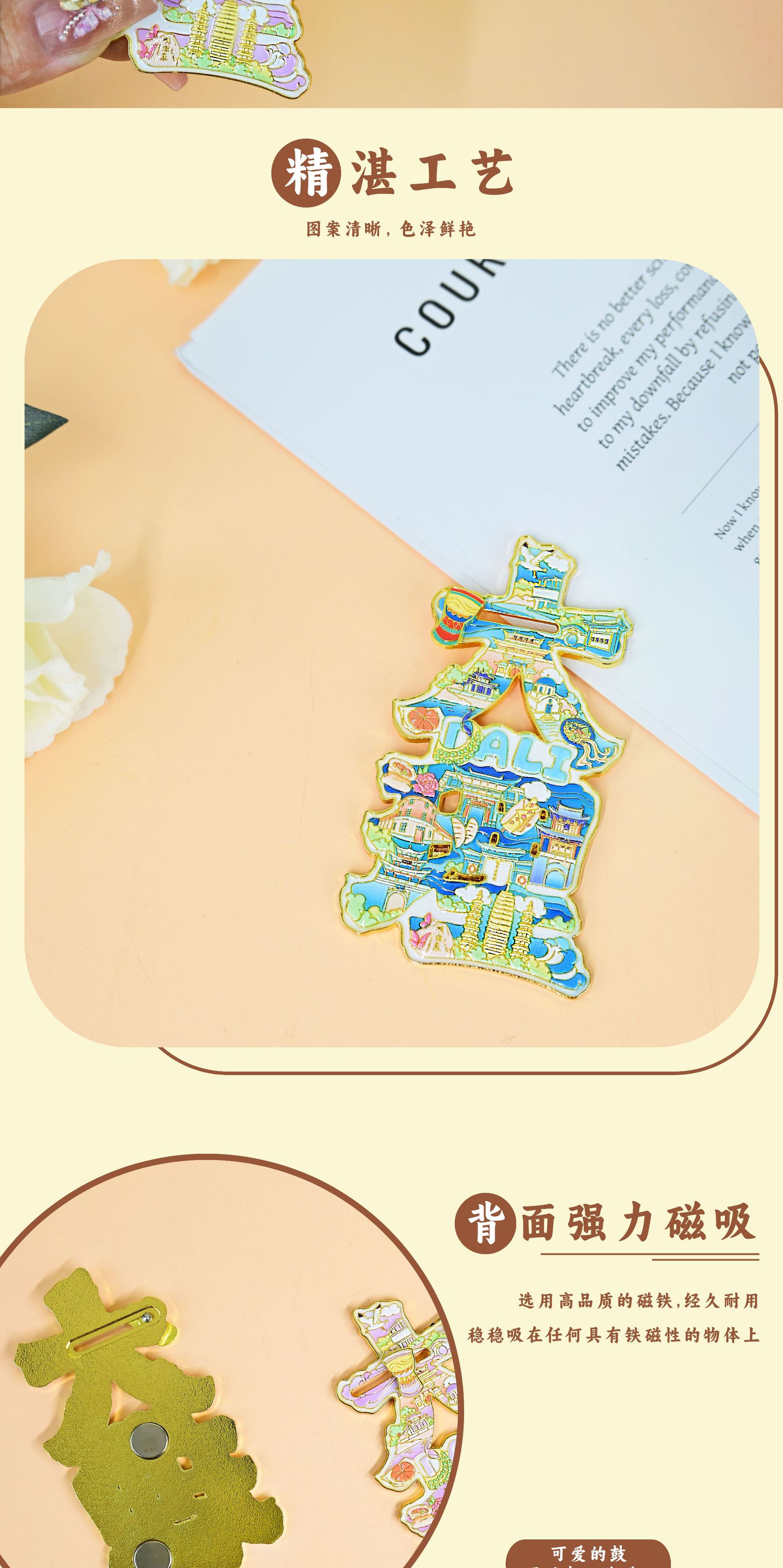 新款大理文创冰箱贴字体磁吸金属中国城市旅游纪念创意礼品伴手礼