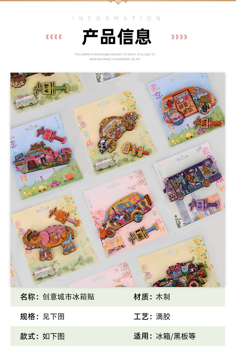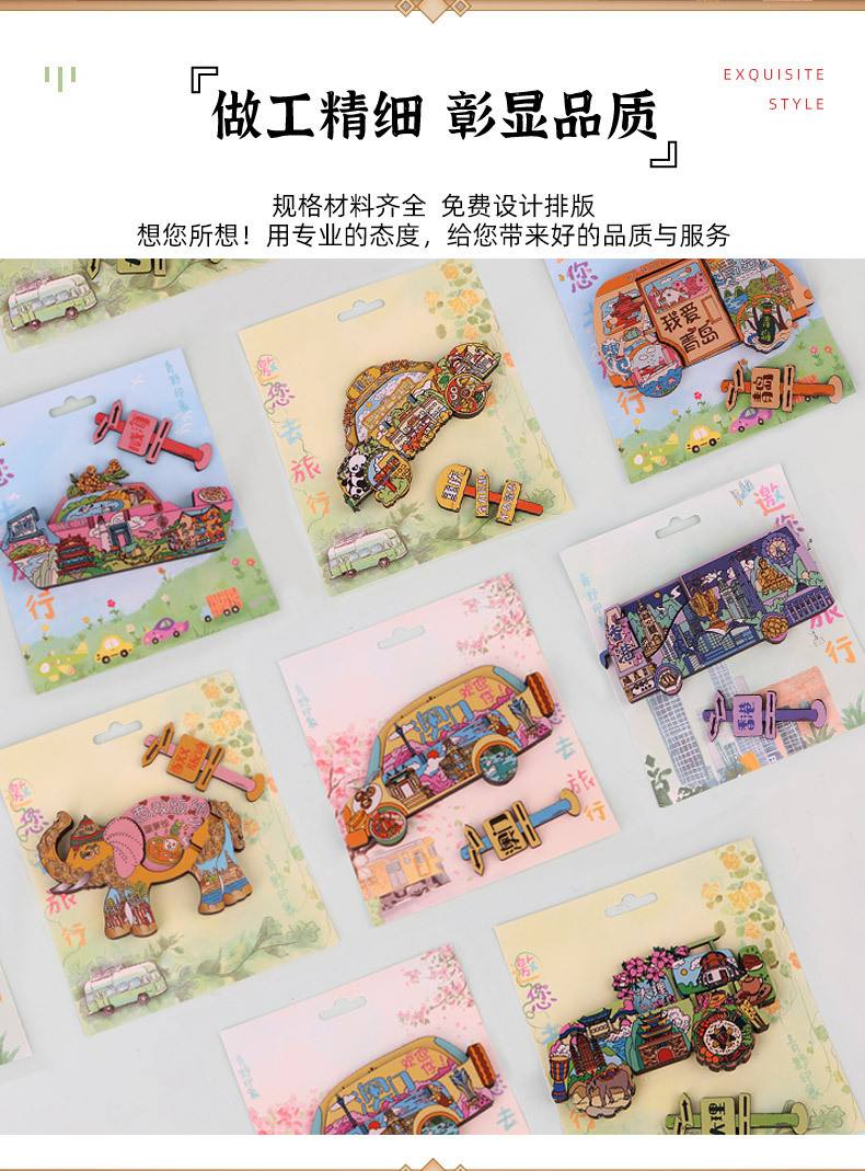 青野现货城市冰箱贴开心旅行系列木质磁吸文创中国城市旅游纪念