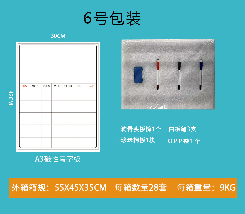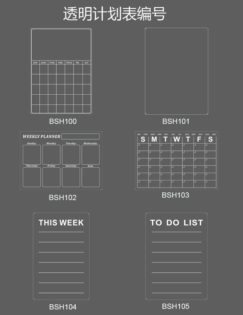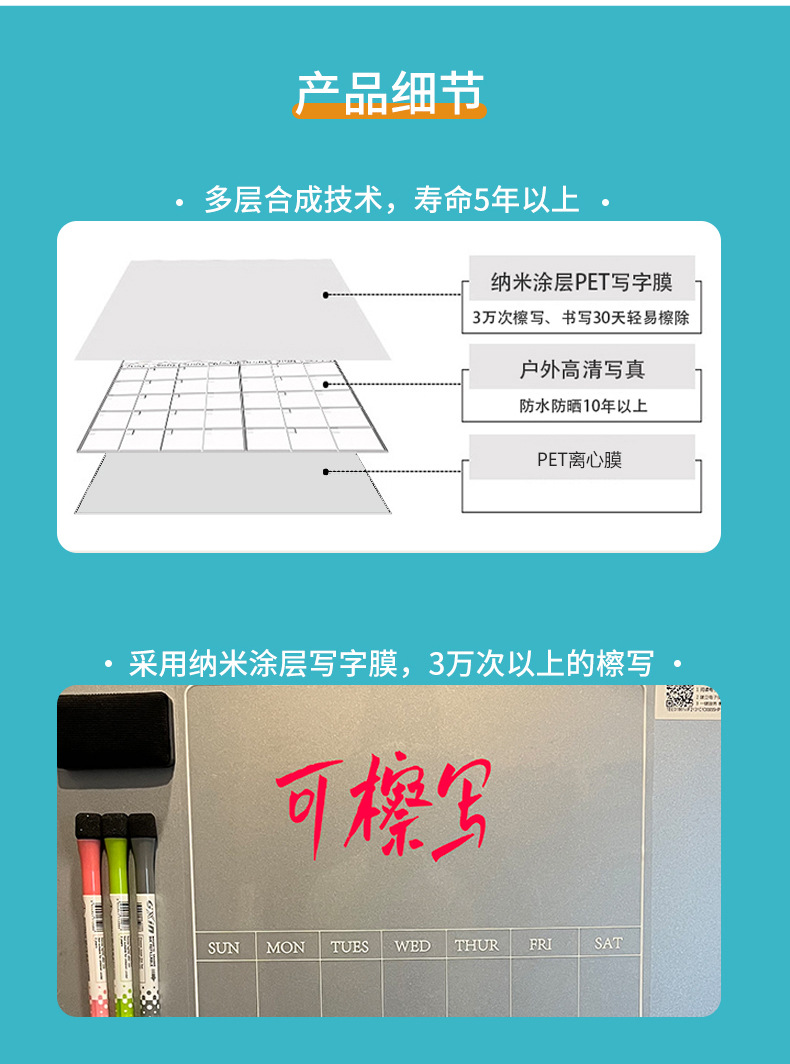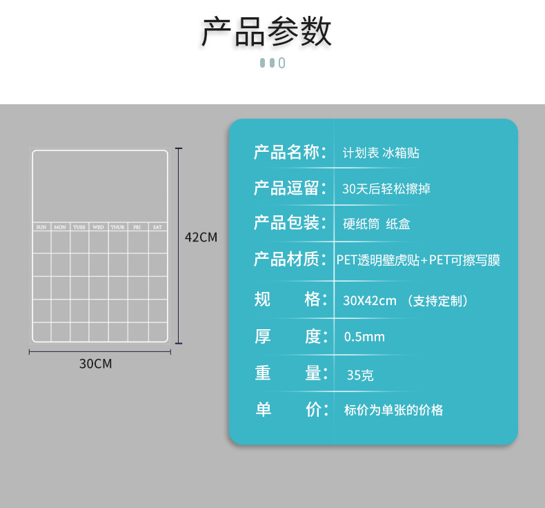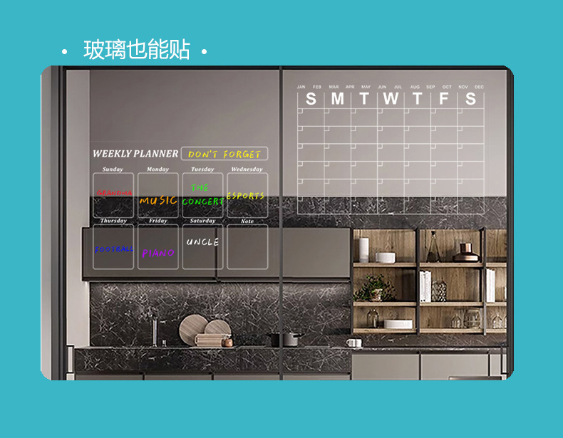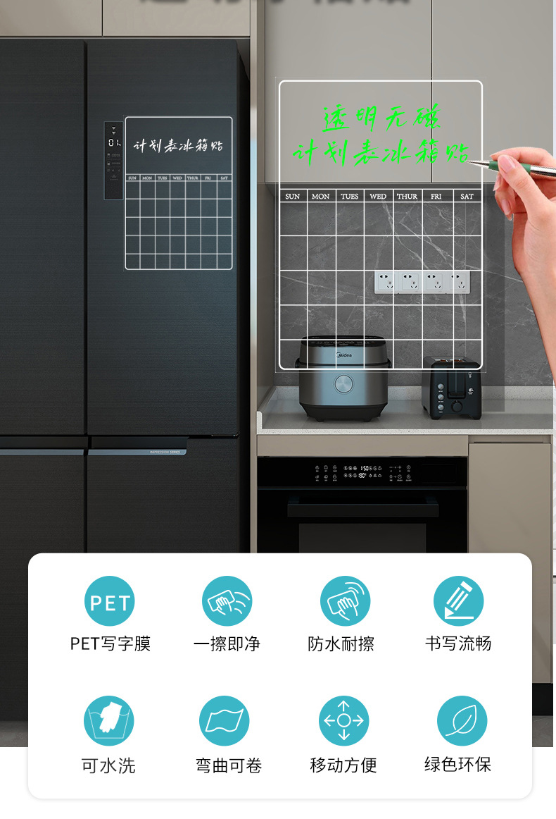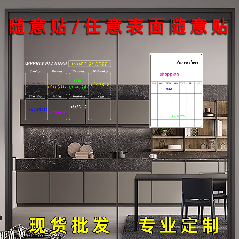透明玻璃门日历收纳计划表日程A3无磁亚克力留言板软白板冰箱贴