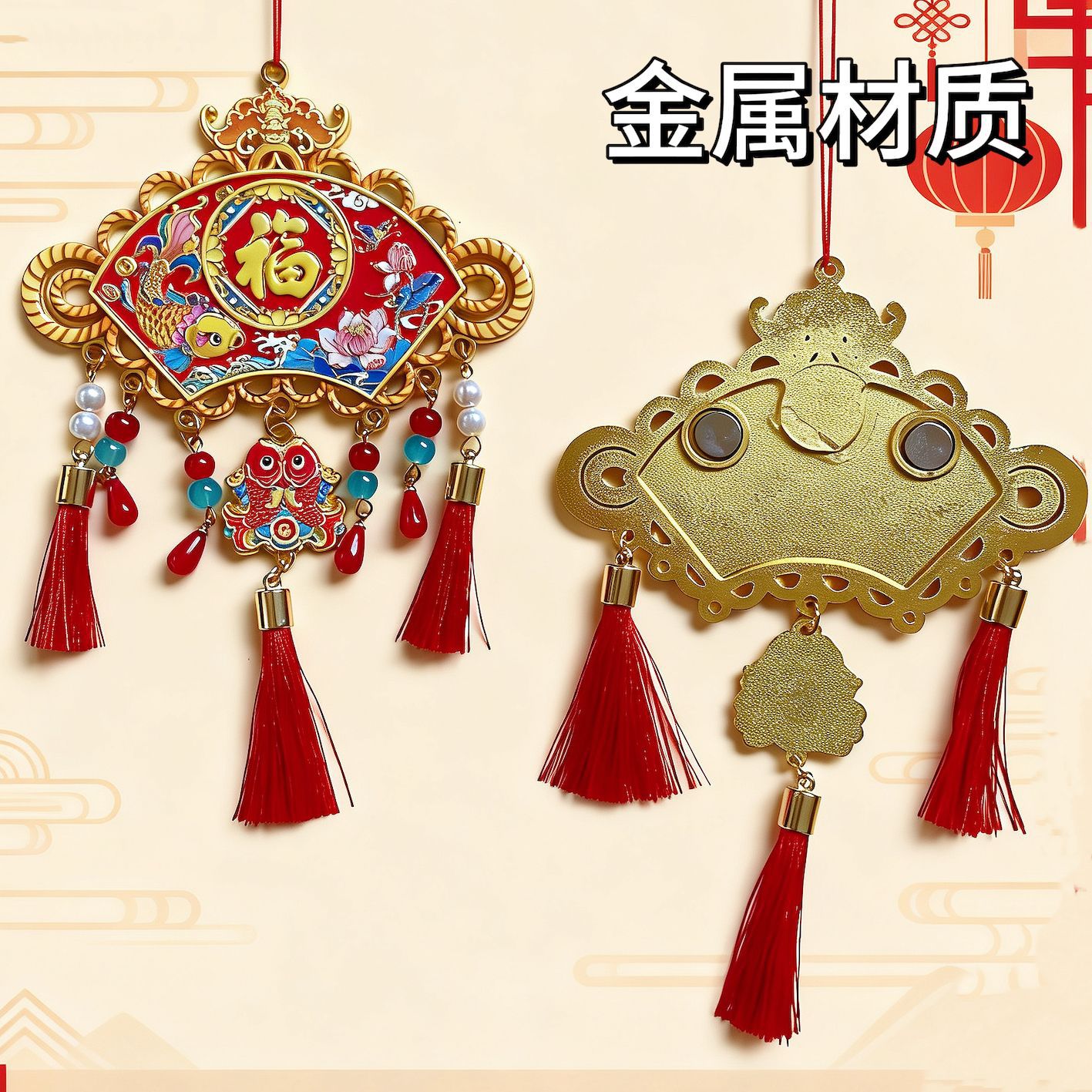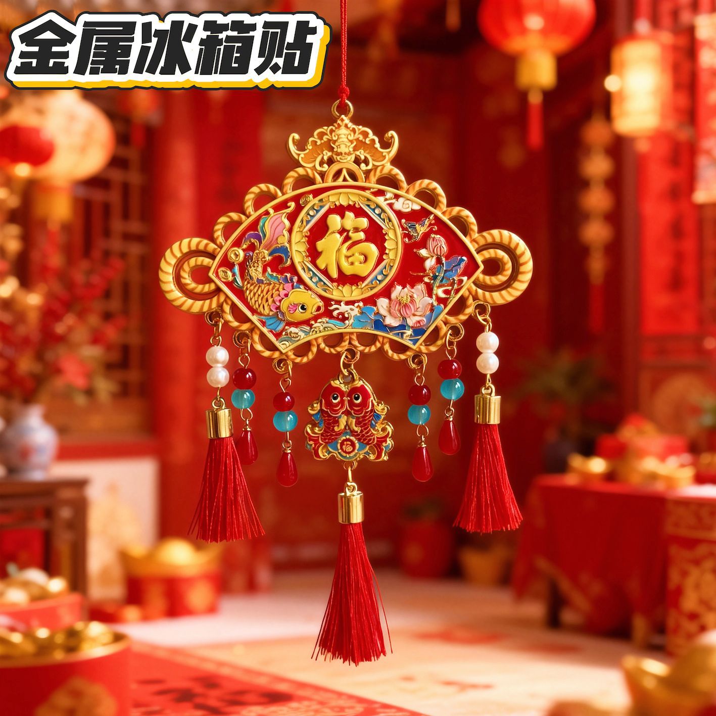 福字金属冰箱贴马年新年冰箱装饰磁吸文创中国结过年喜庆礼品批发
