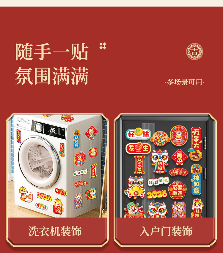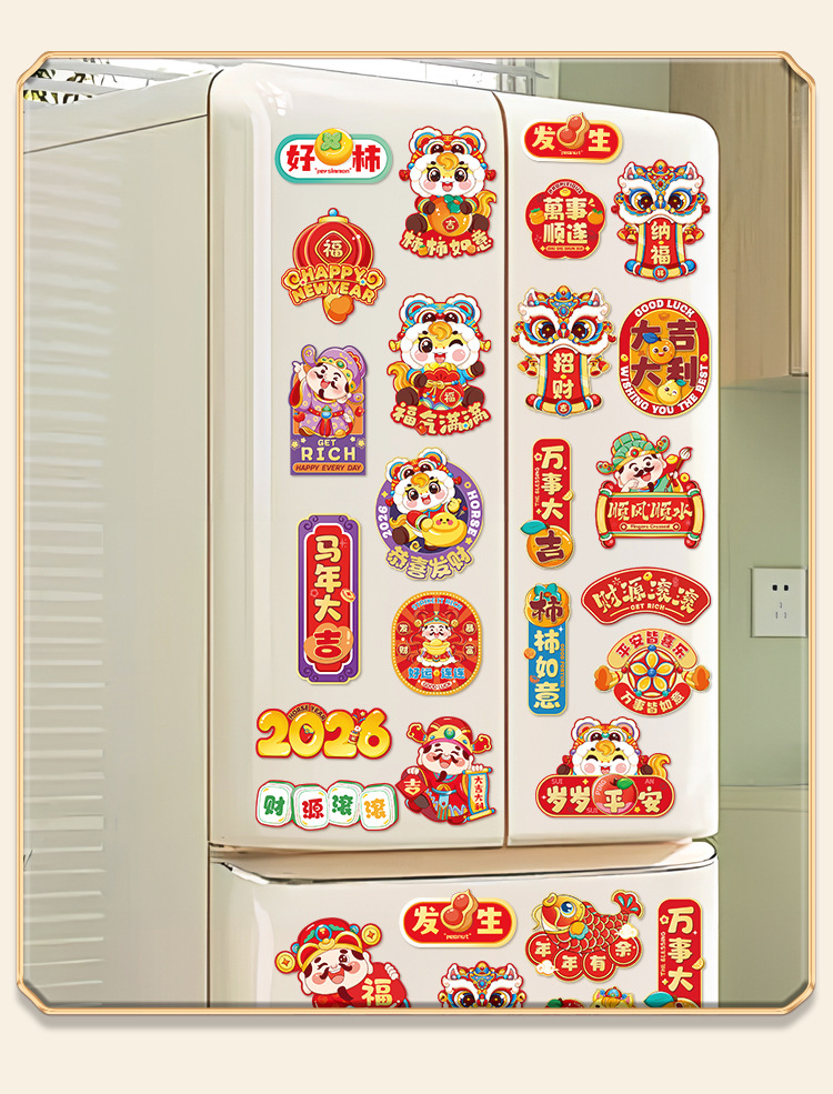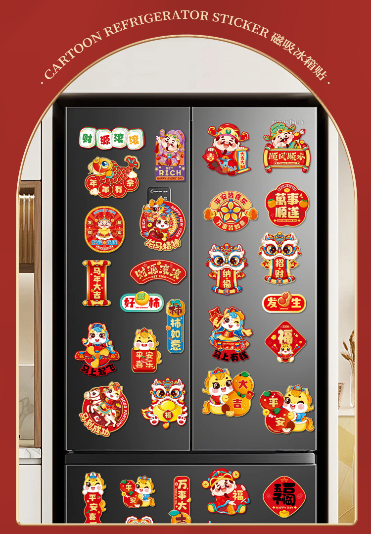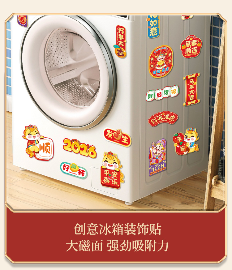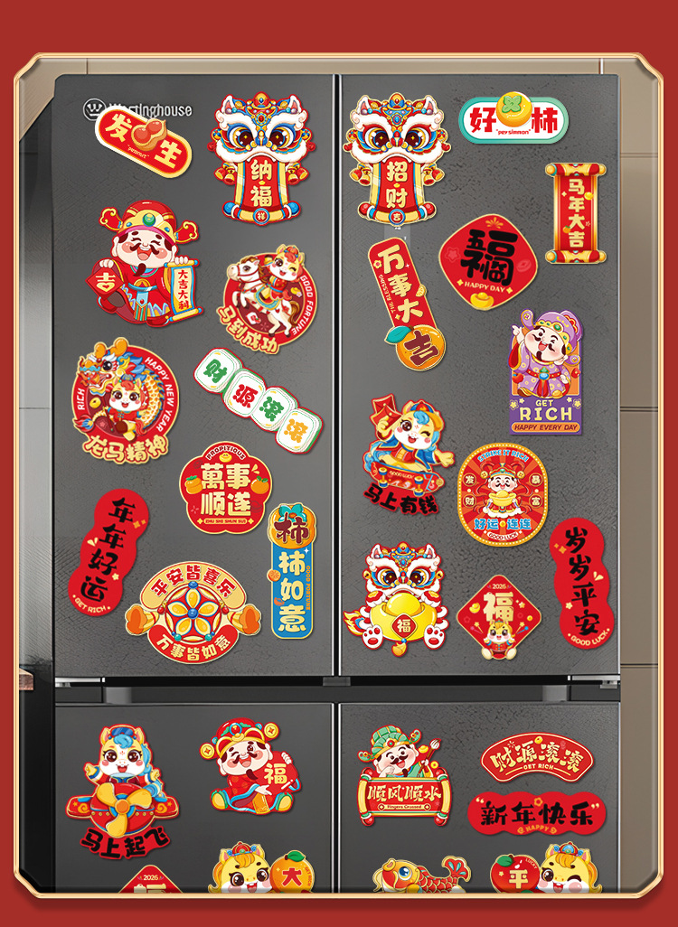 2026新款马年新年装饰过年创意磁吸冰箱贴对联福字挂饰春节装饰品