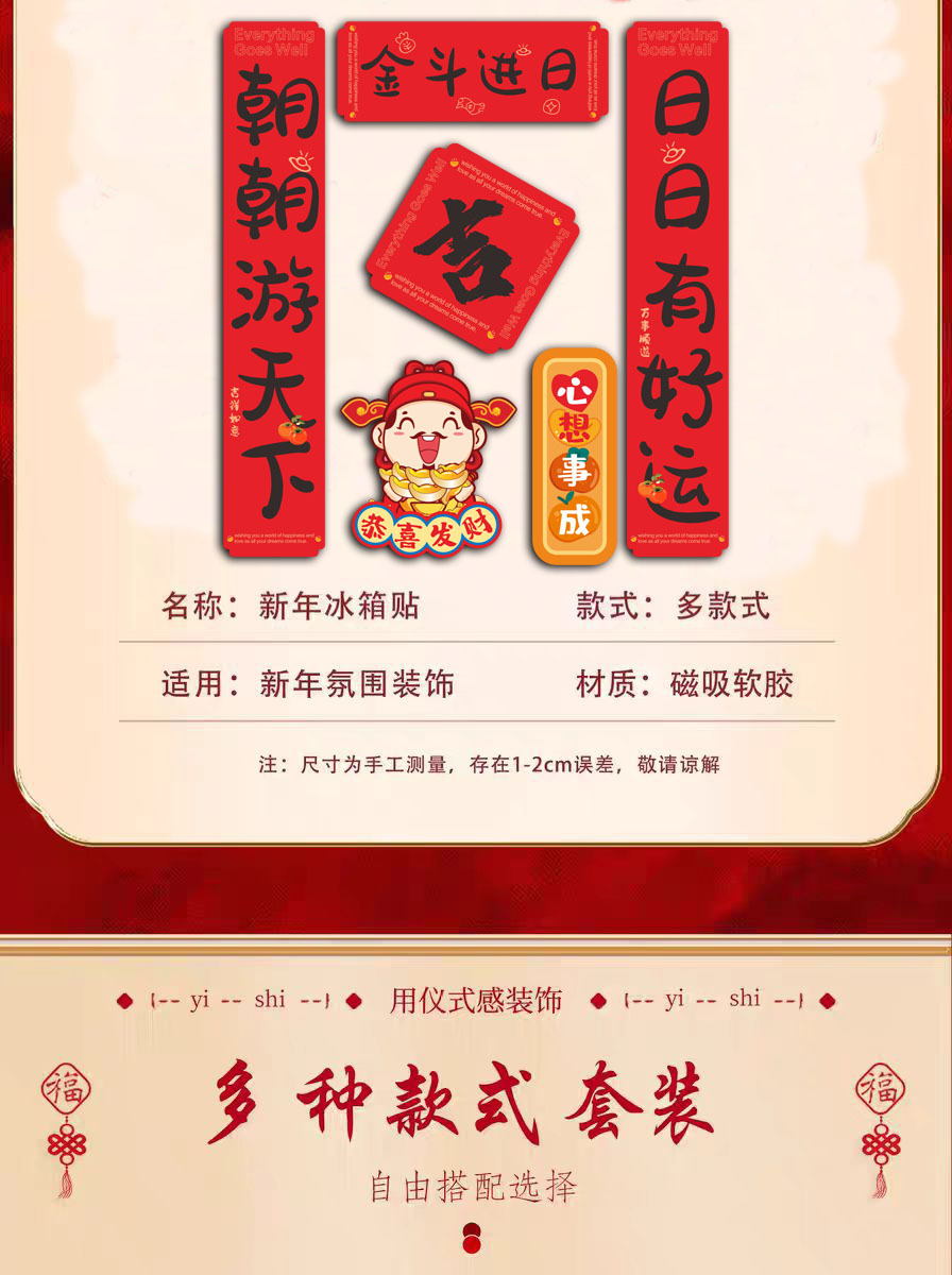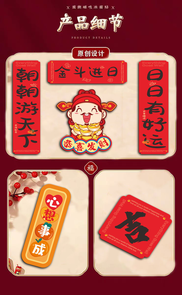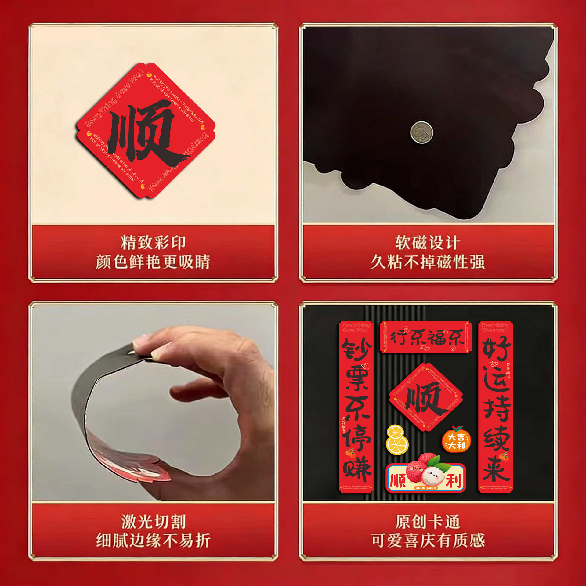 新年装饰创意磁性贴纸春节场景布置对联2026马年新款磁吸冰箱贴
