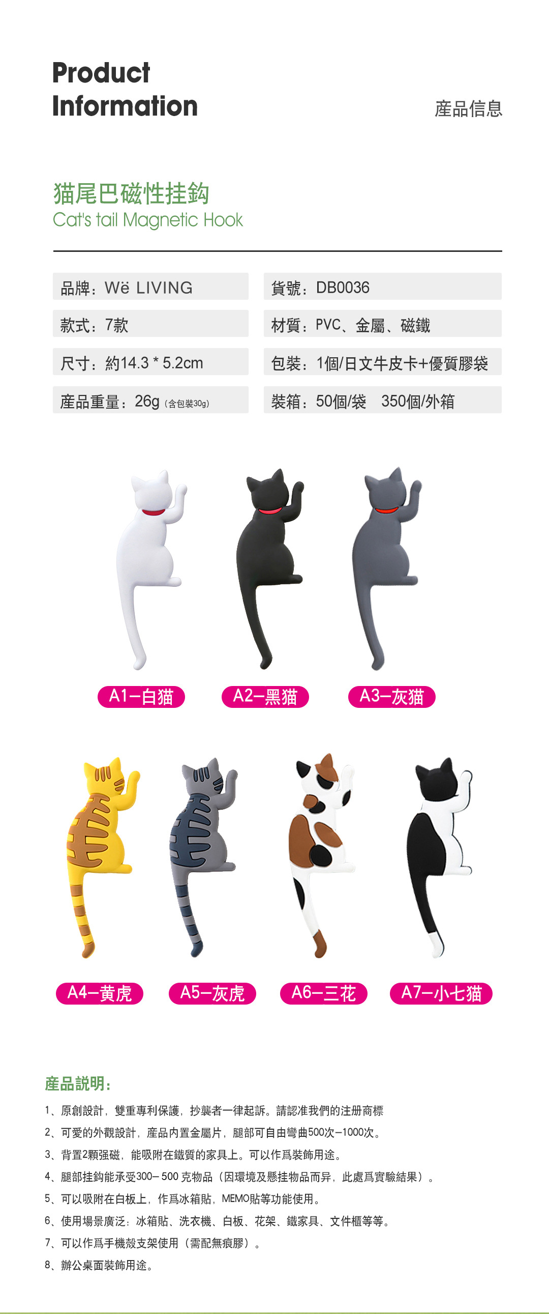 源头跨境可爱猫尾巴冰箱贴挂钩强磁石钩子创意可爱磁力贴日韩台湾