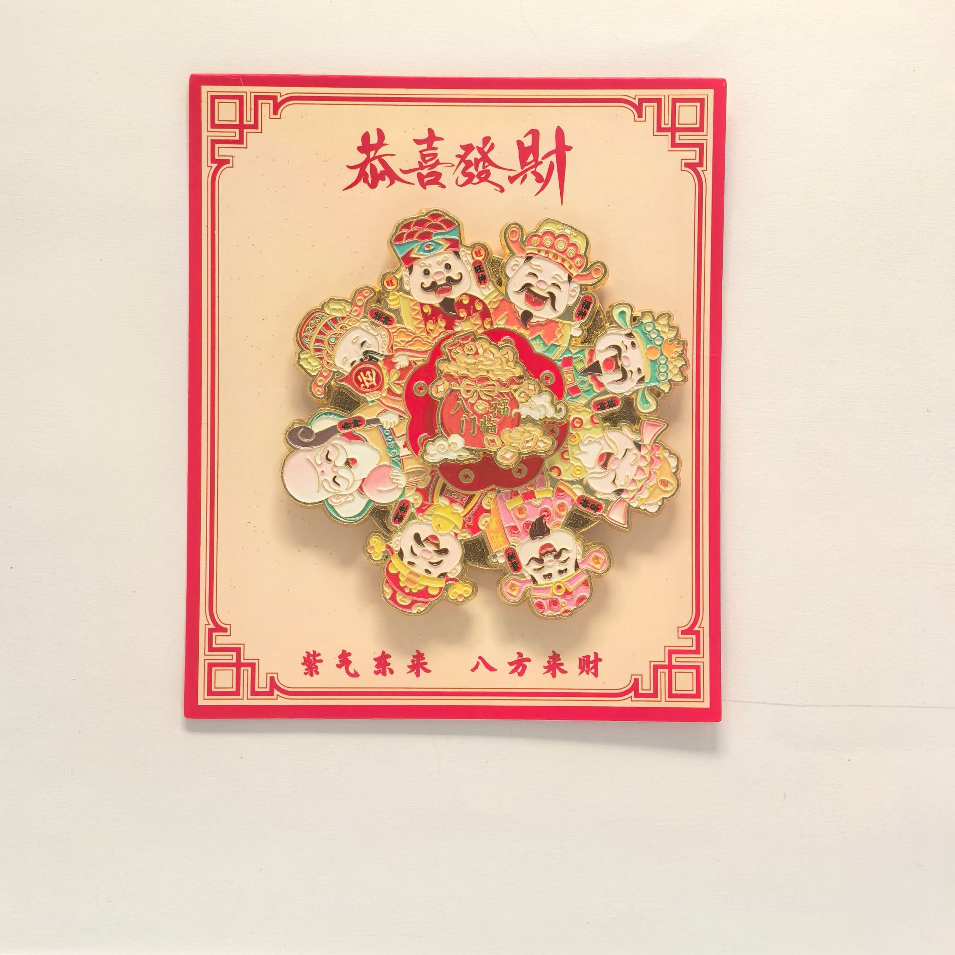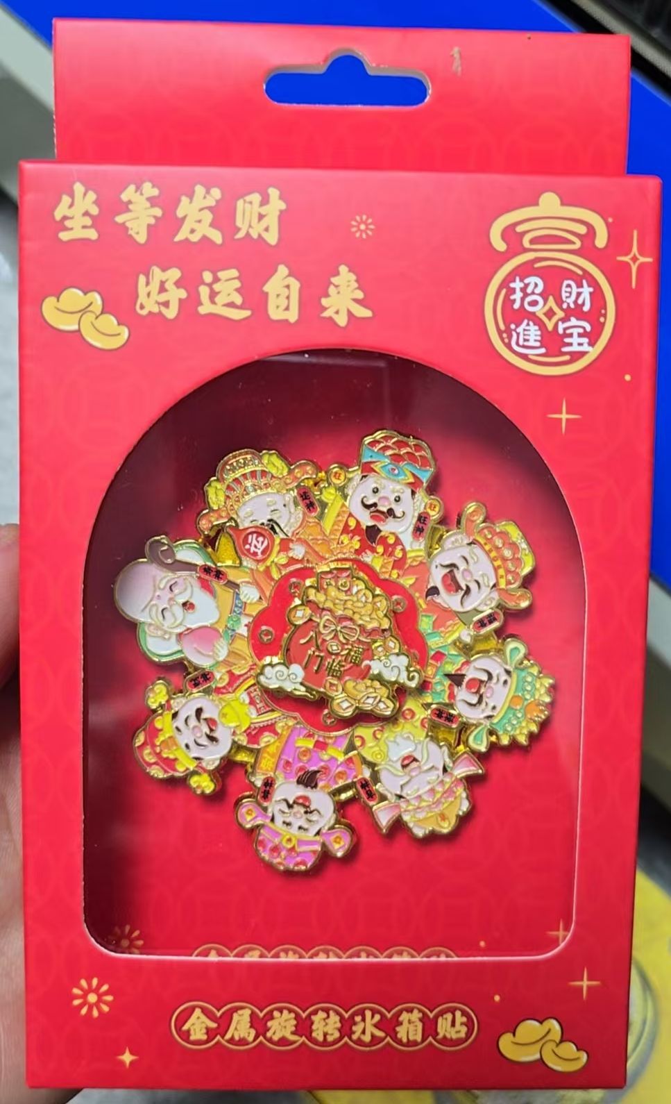 国潮财福来运转冰箱贴磁吸可旋转卡纸文创金属装饰中国风冰箱门