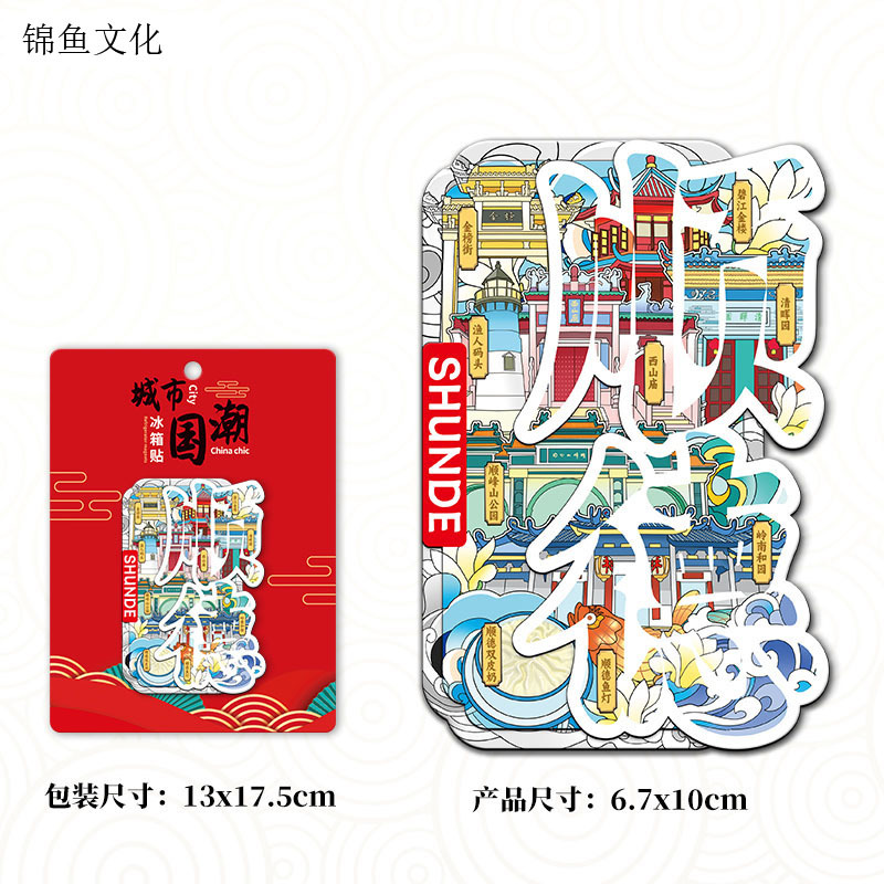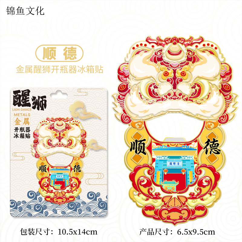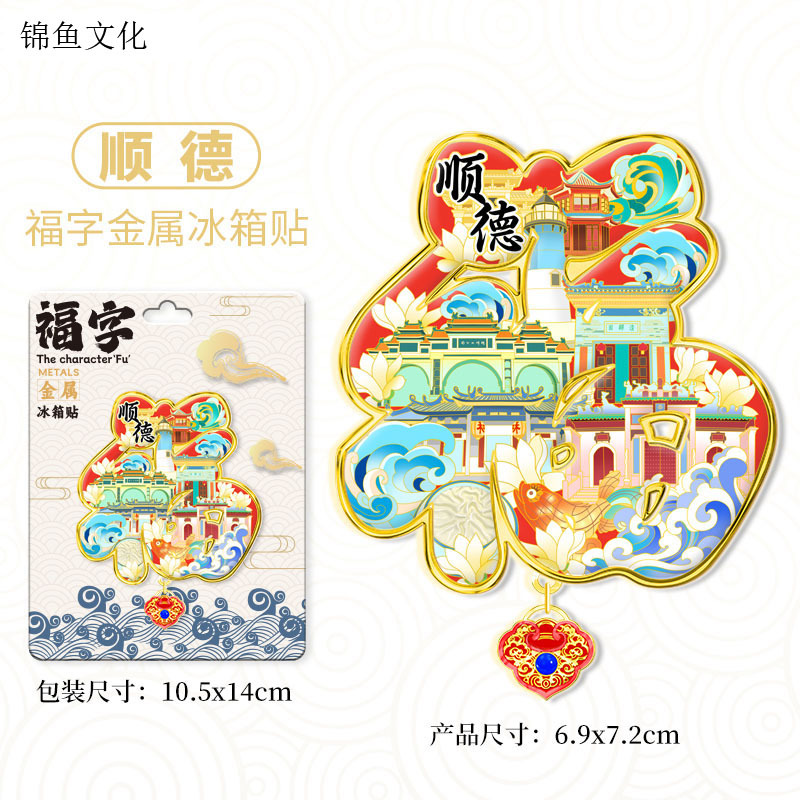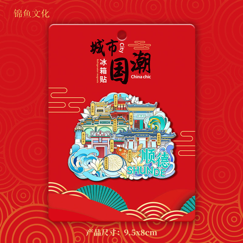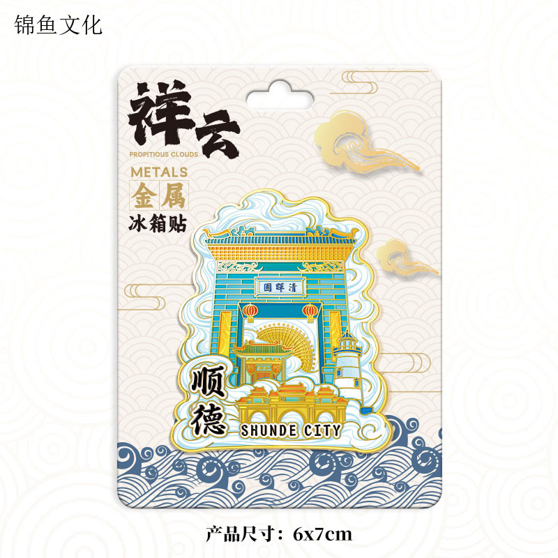 广东顺德清晖园顺峰山岭南和园木质马年旅游纪念品金属城市冰箱贴