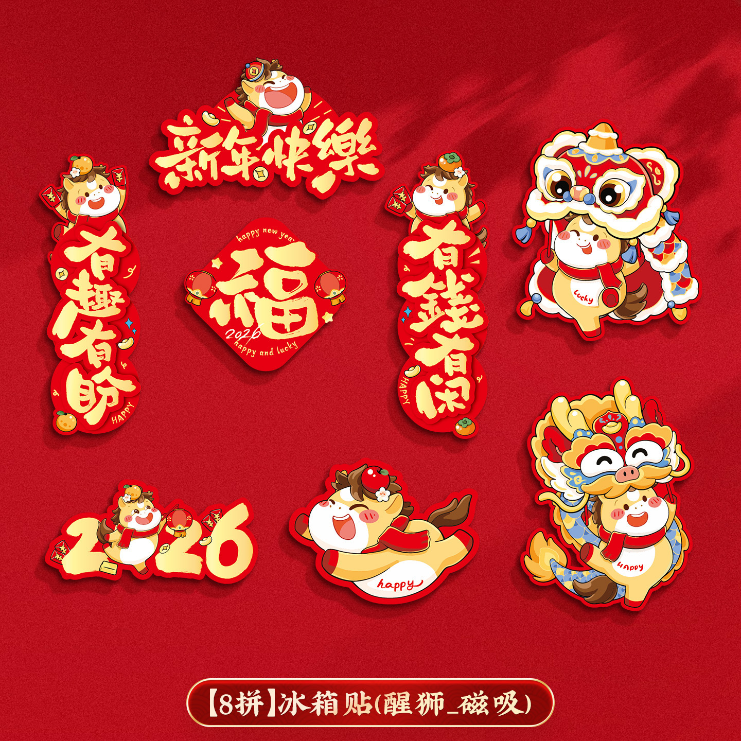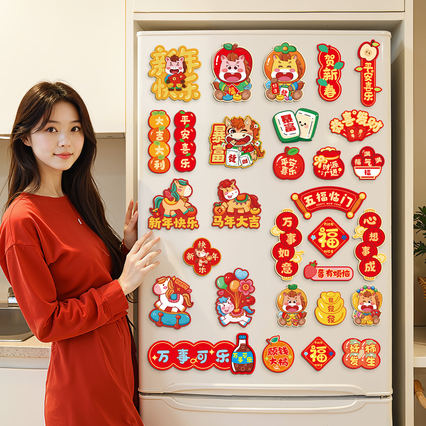 马年冰箱贴2026新款创意卡通磁吸贴新年装饰春节过年喜庆福字挂饰