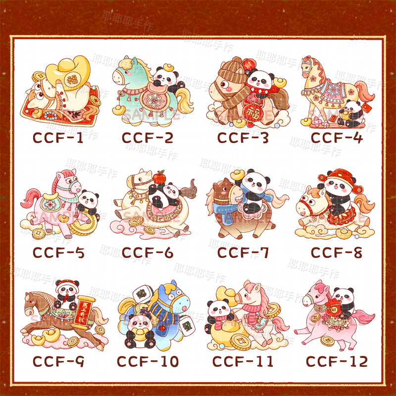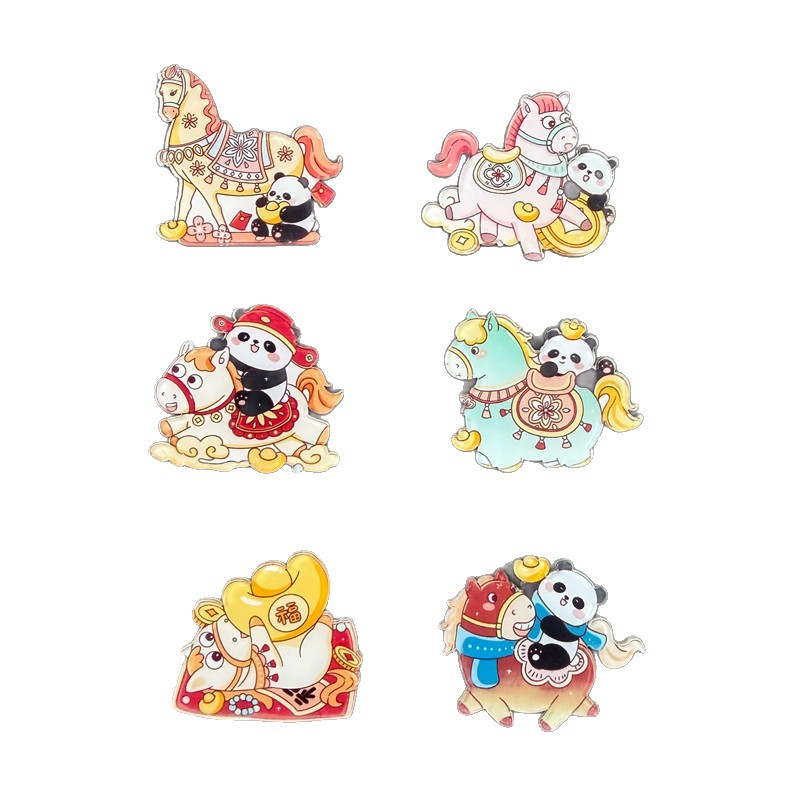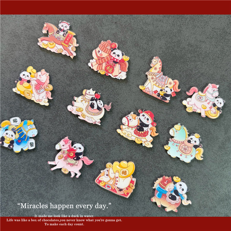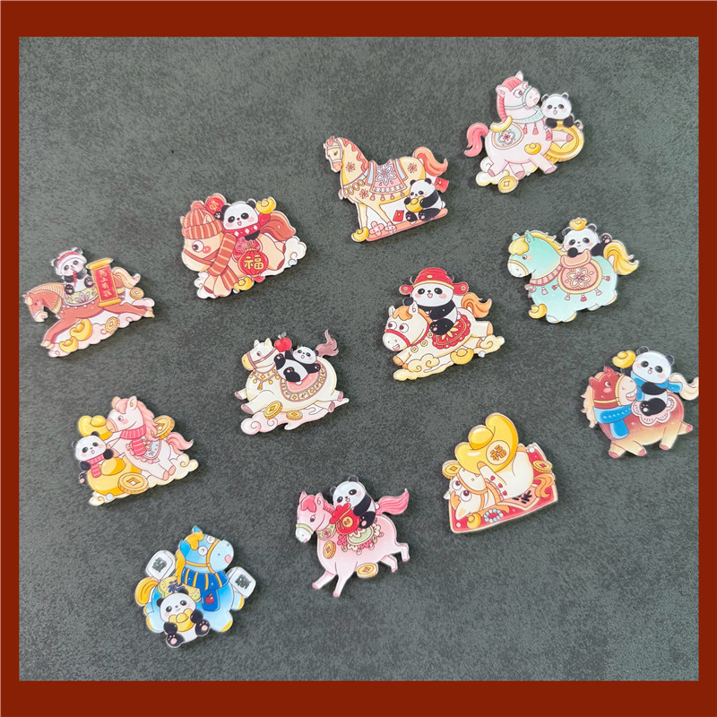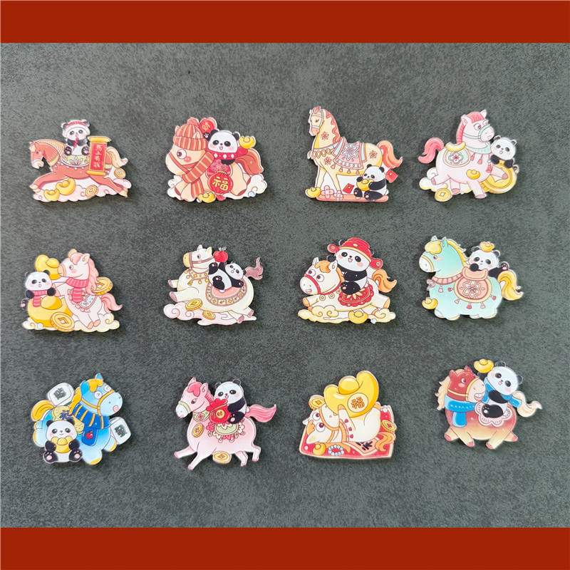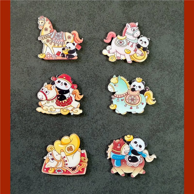 新年跨年马年装饰冰箱贴2026喜庆熊猫小马国风国潮吸铁石国潮磁铁