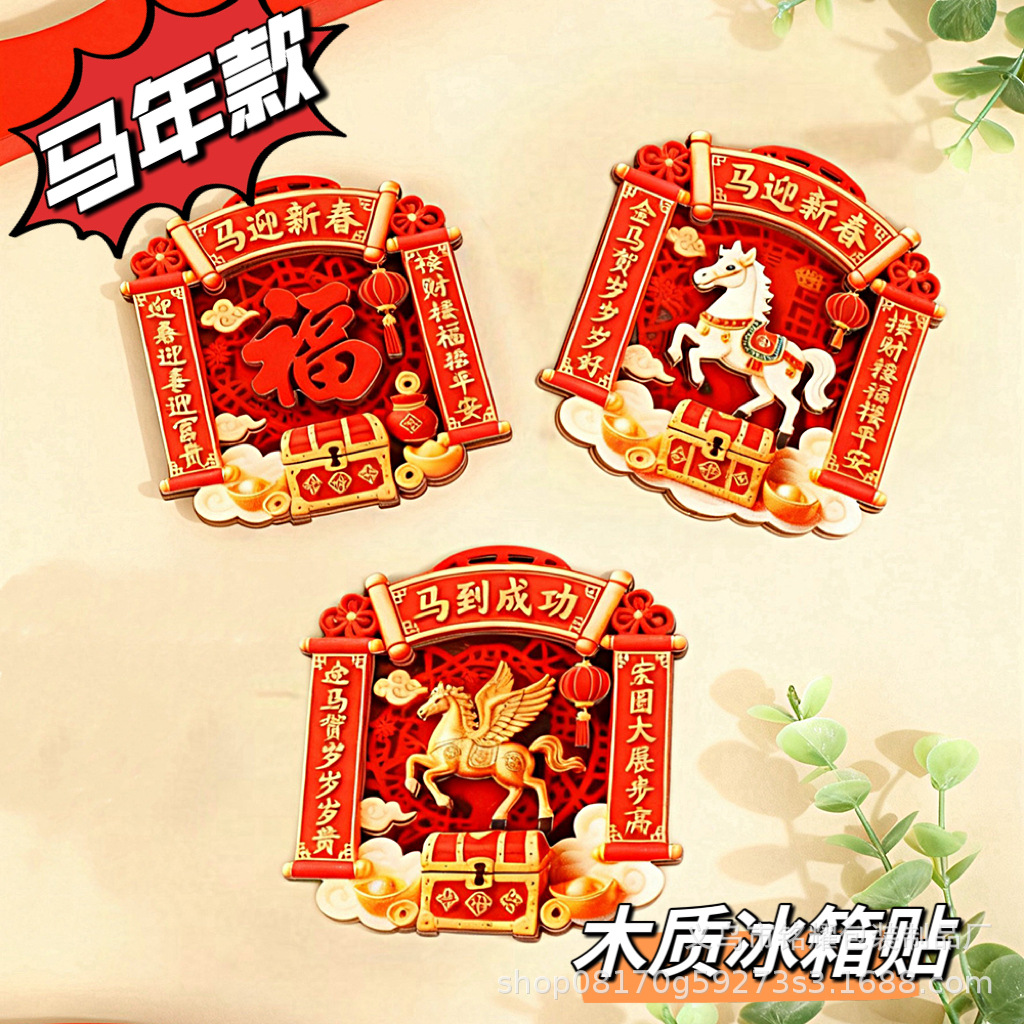 中国文化马年木质3D立体冰箱贴伴手礼纪念品喜庆礼物强力磁贴批发