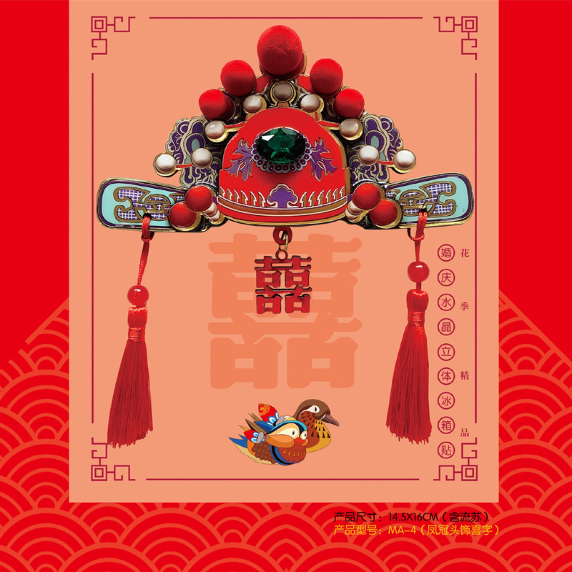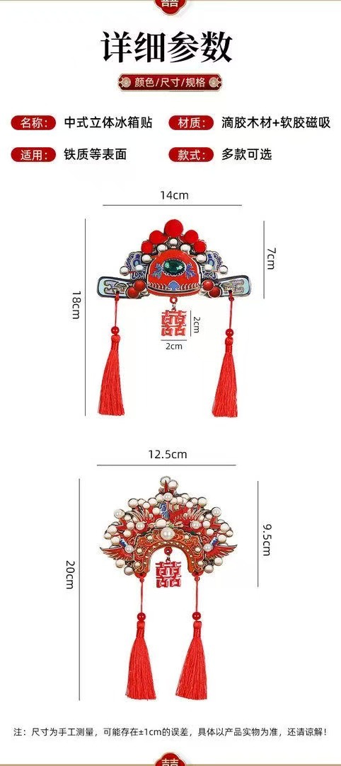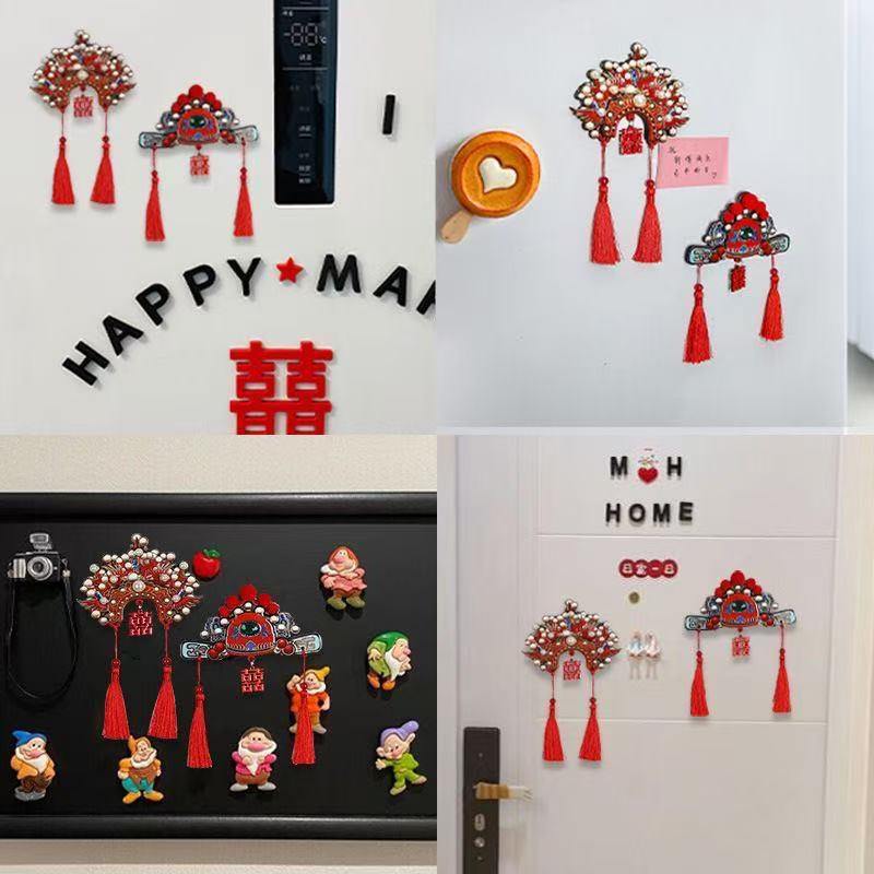 凤冠管帽冰箱贴装饰立体磁吸中式国潮礼盒装送新人结婚马年吉祥物