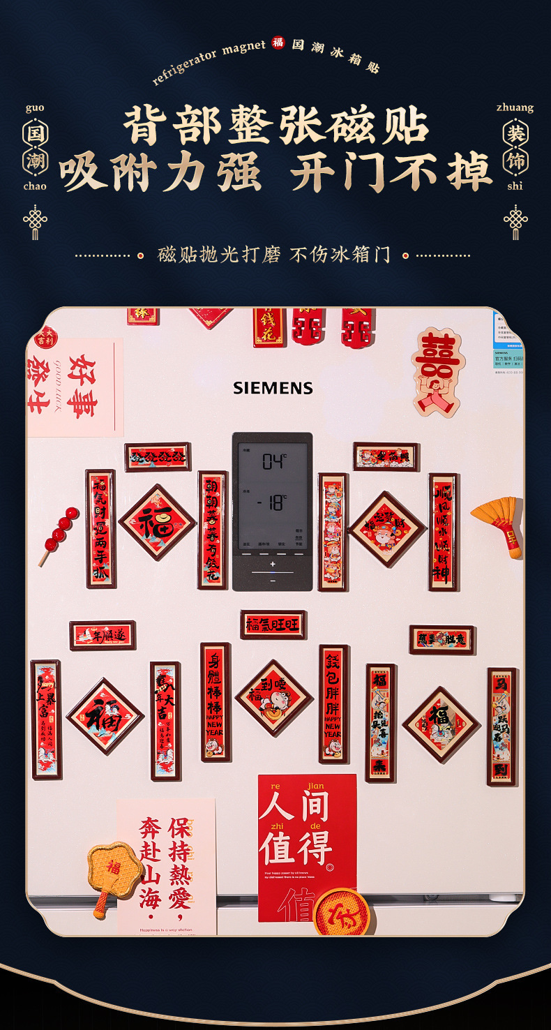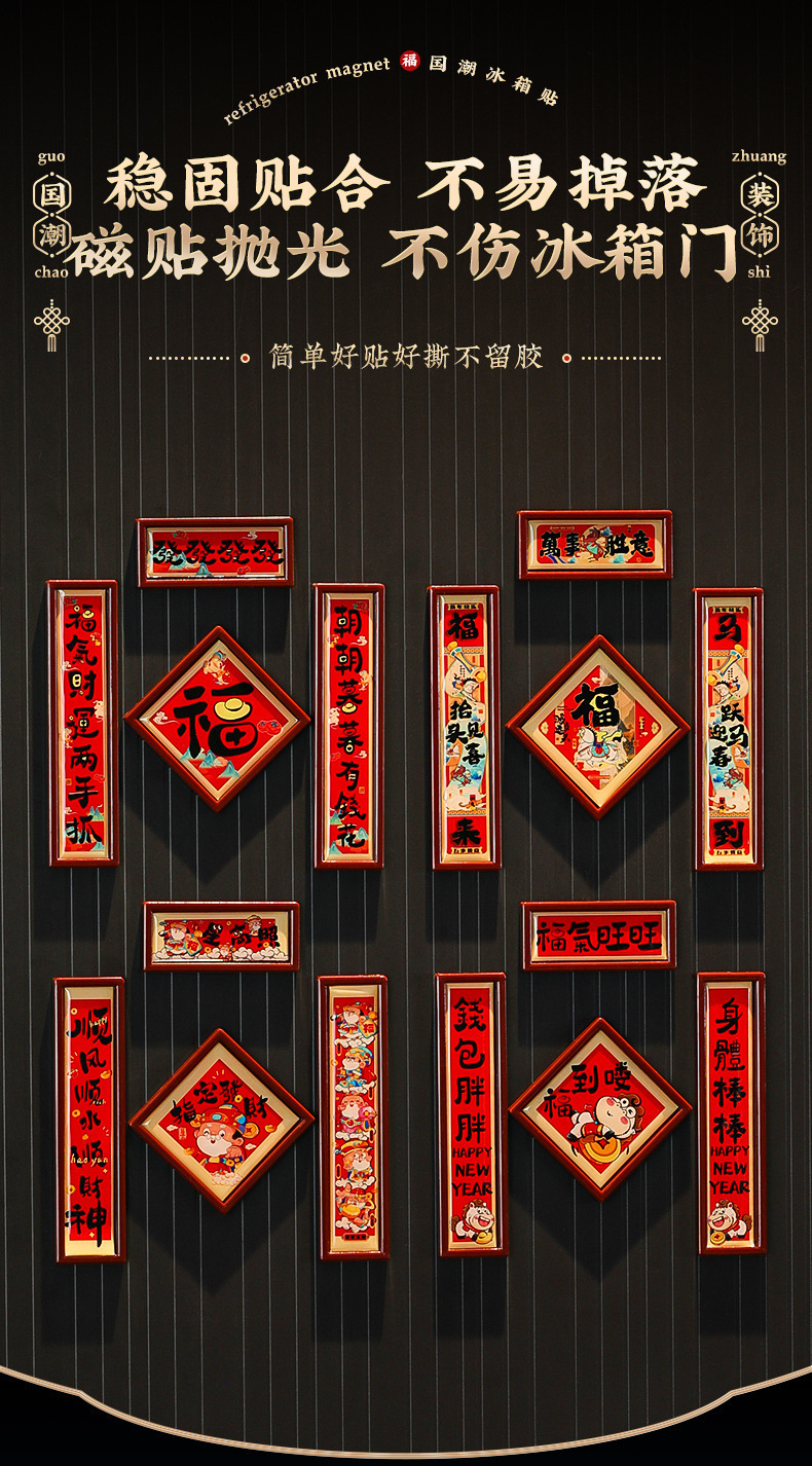 2026新款马年磁吸小对联春节过年创意福字冰箱贴新年氛围布置装饰