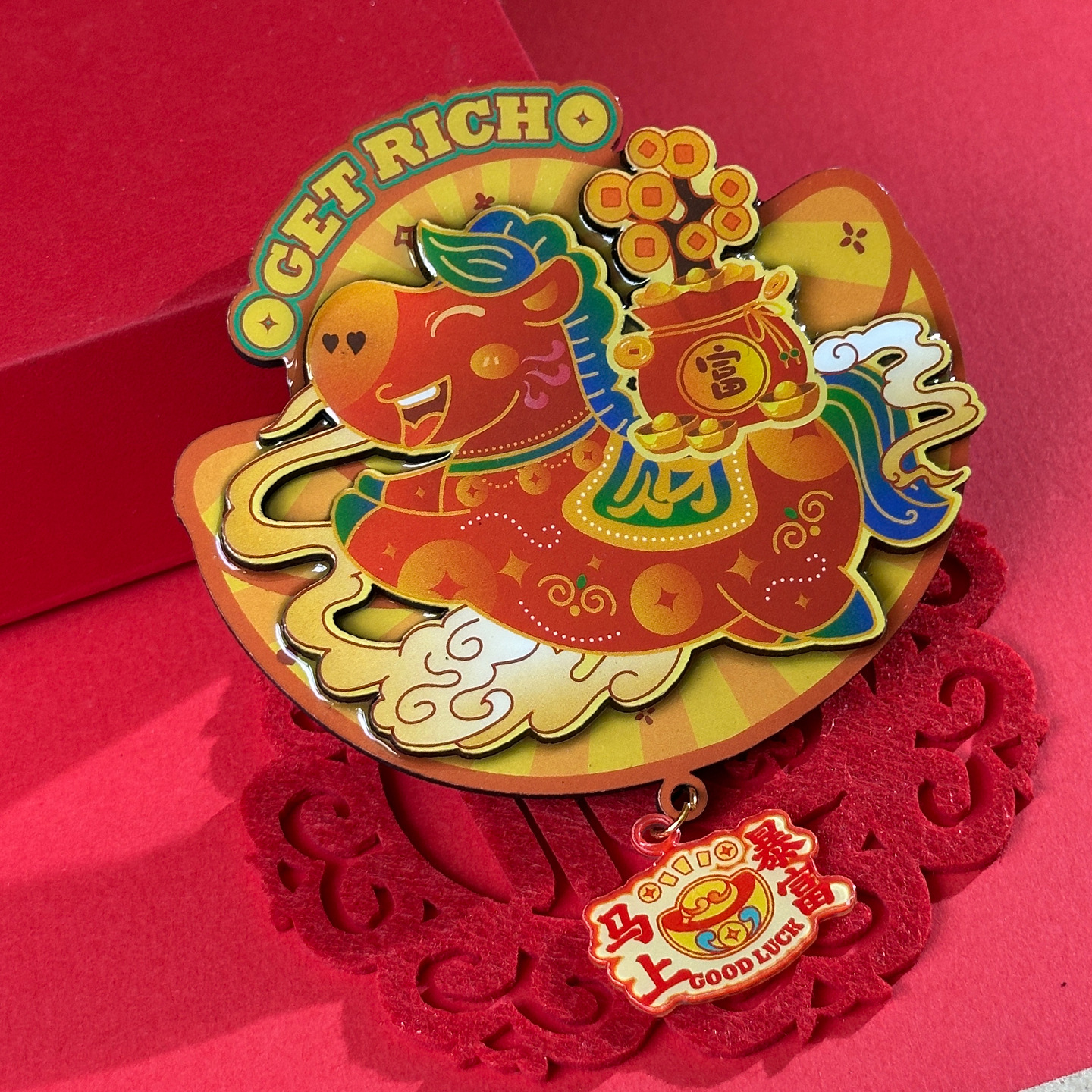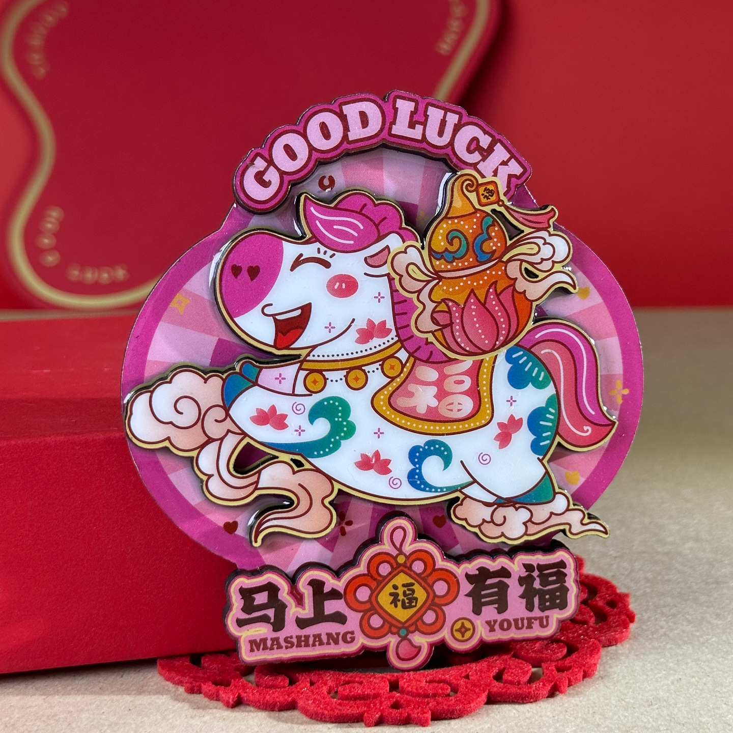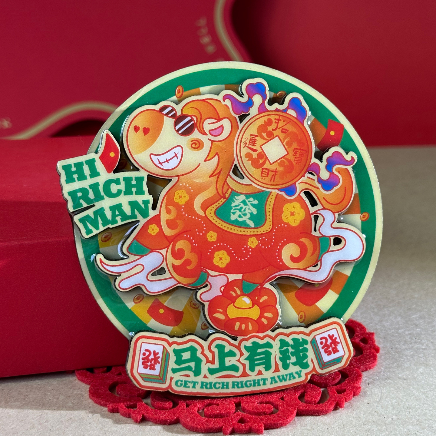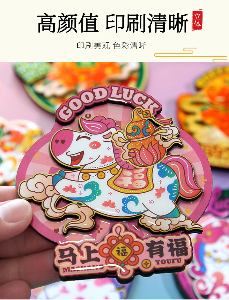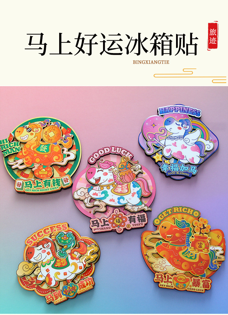 2026年马年冰箱贴春节新款马上暴富龙马精神喜庆财神磁贴新年装饰