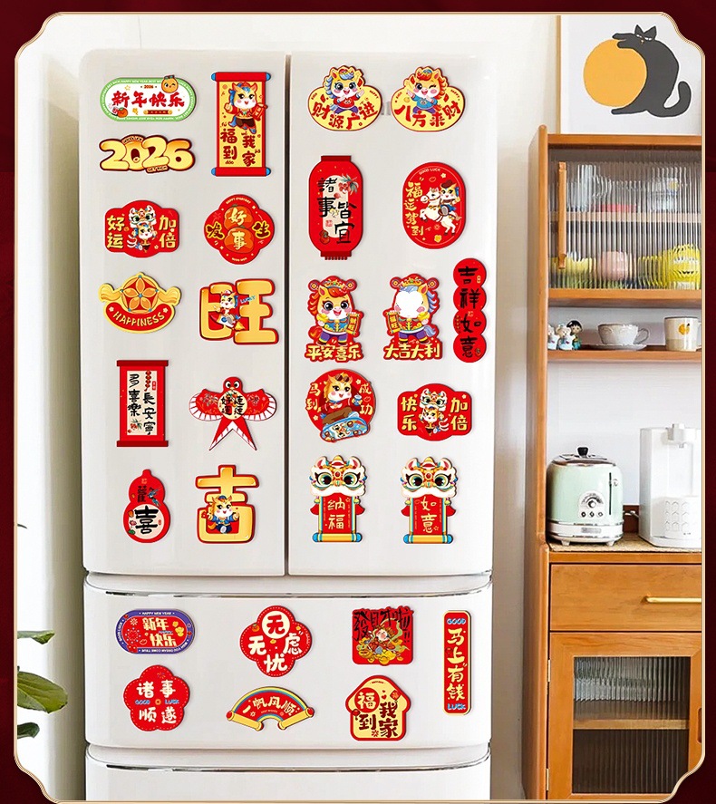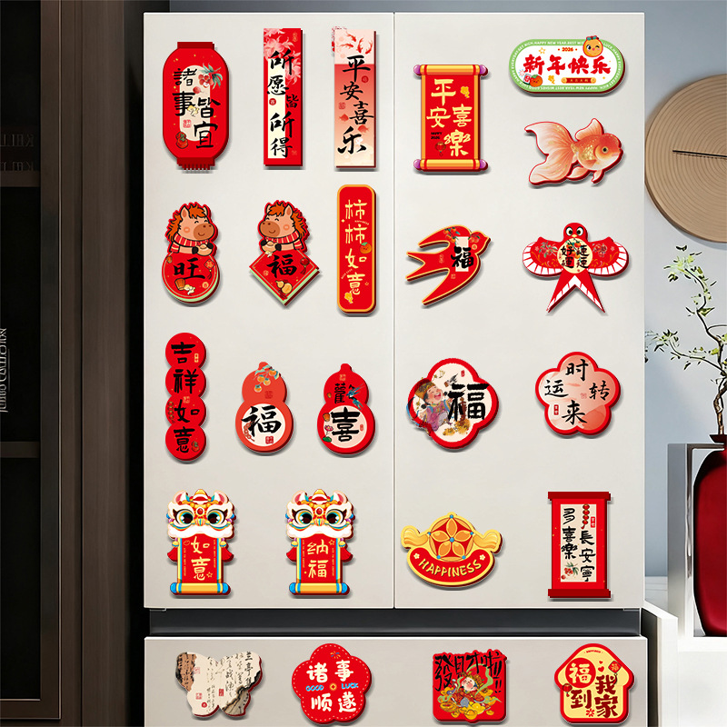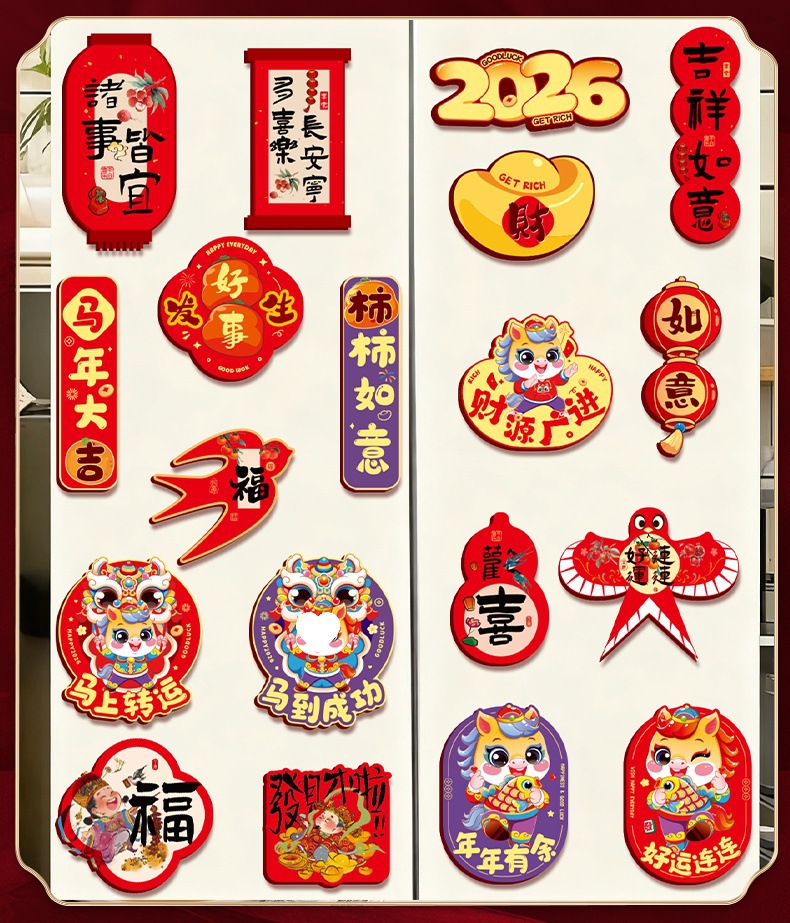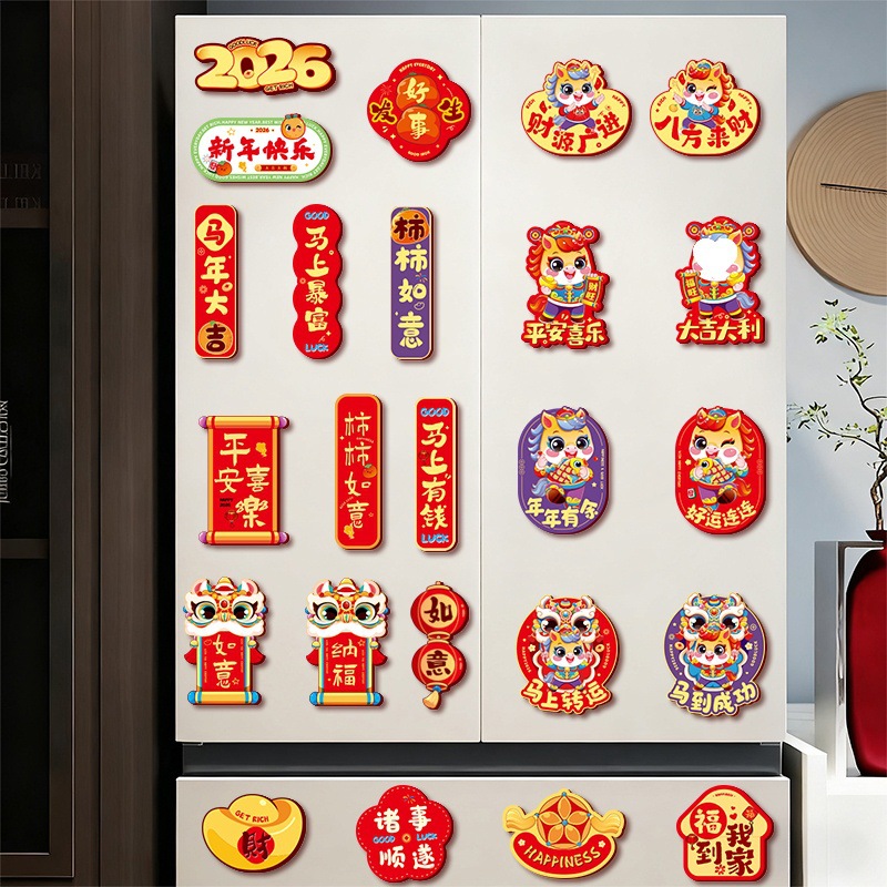 2026马年卡通创意磁吸冰箱贴春节过年新年福字贴新春装饰布置用品