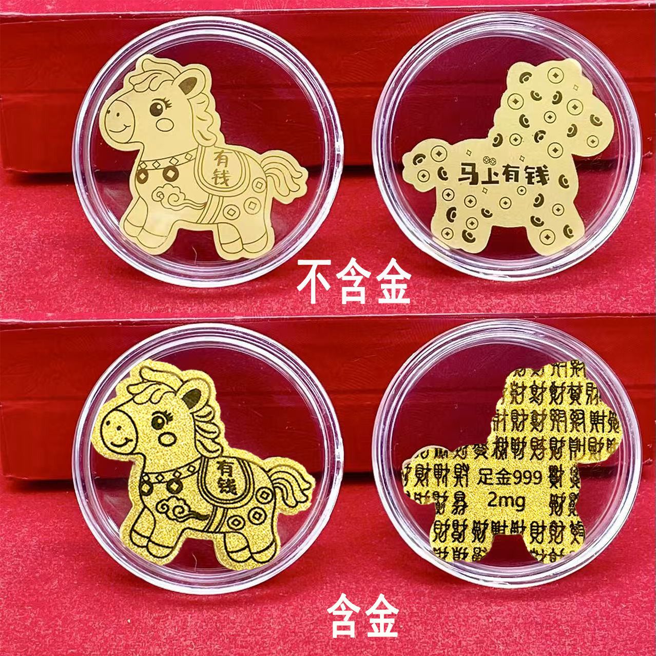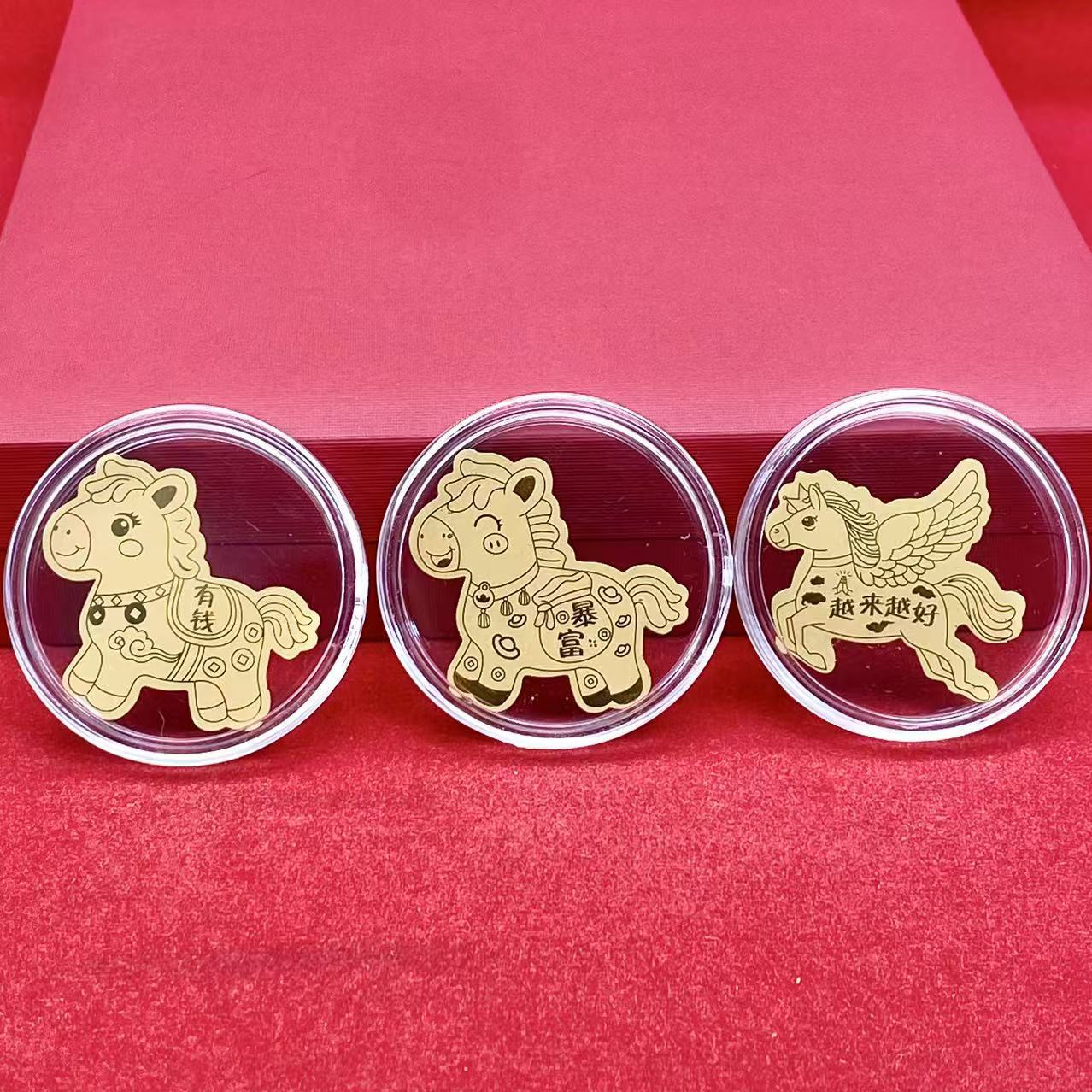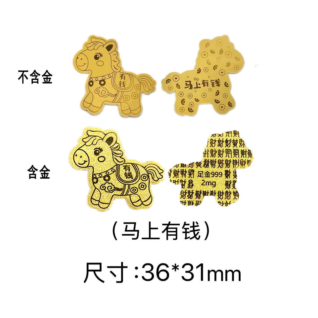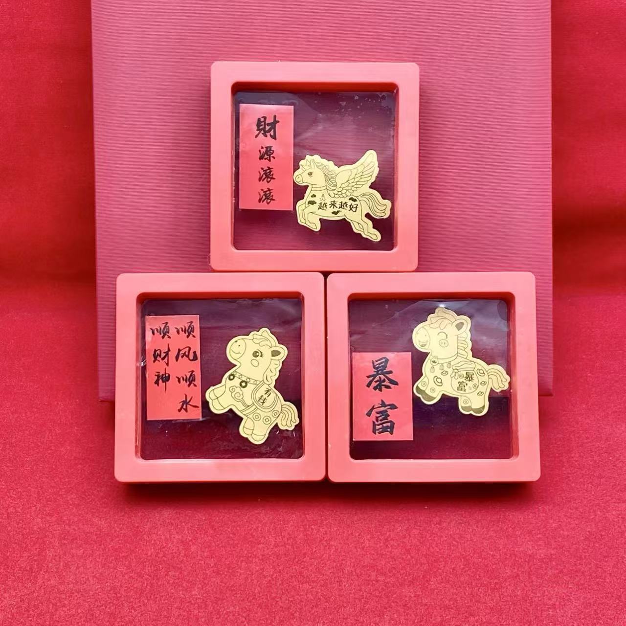 马年马上有钱金箔手机贴暴富金片贴纸越来越好金色冰箱贴红盒装