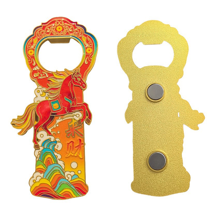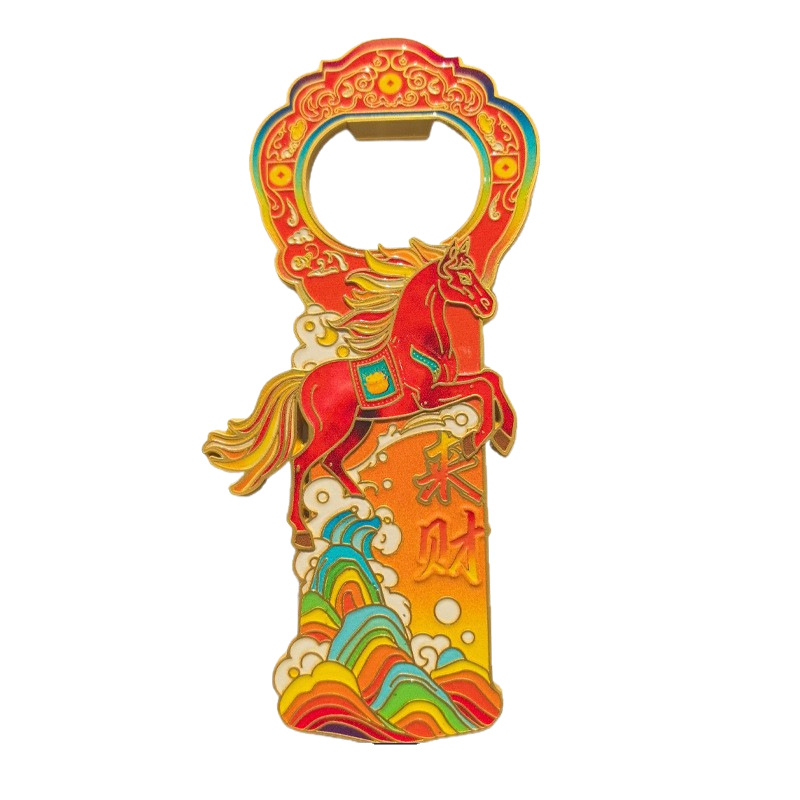 国潮柿柿如意马上来财 马年冰箱贴开瓶器 马创意摆件 精美工艺品