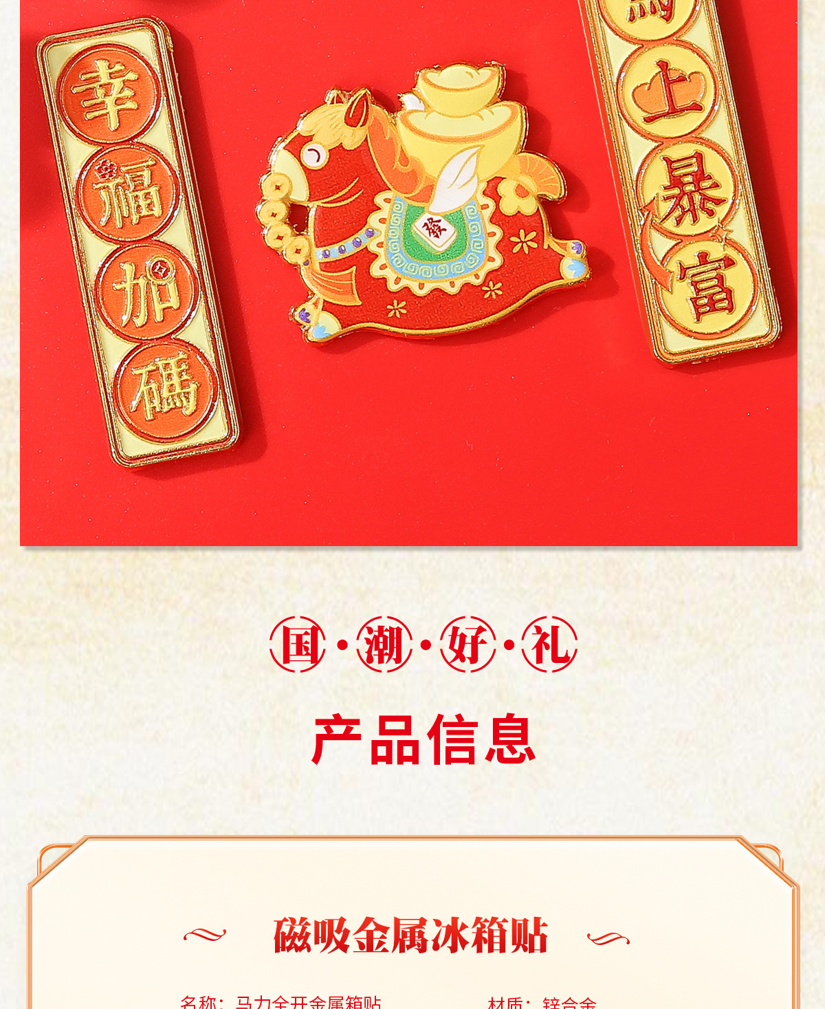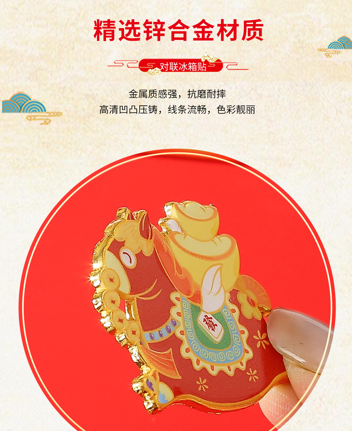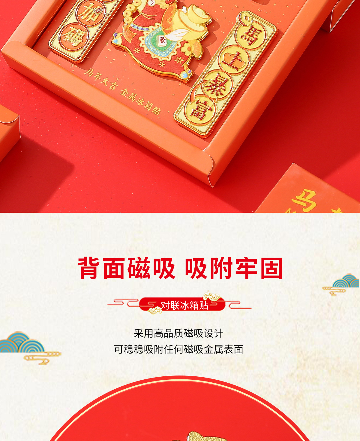 2026年新款马力全开金属冰箱贴马年大吉春节幸福美满马上爆富对联