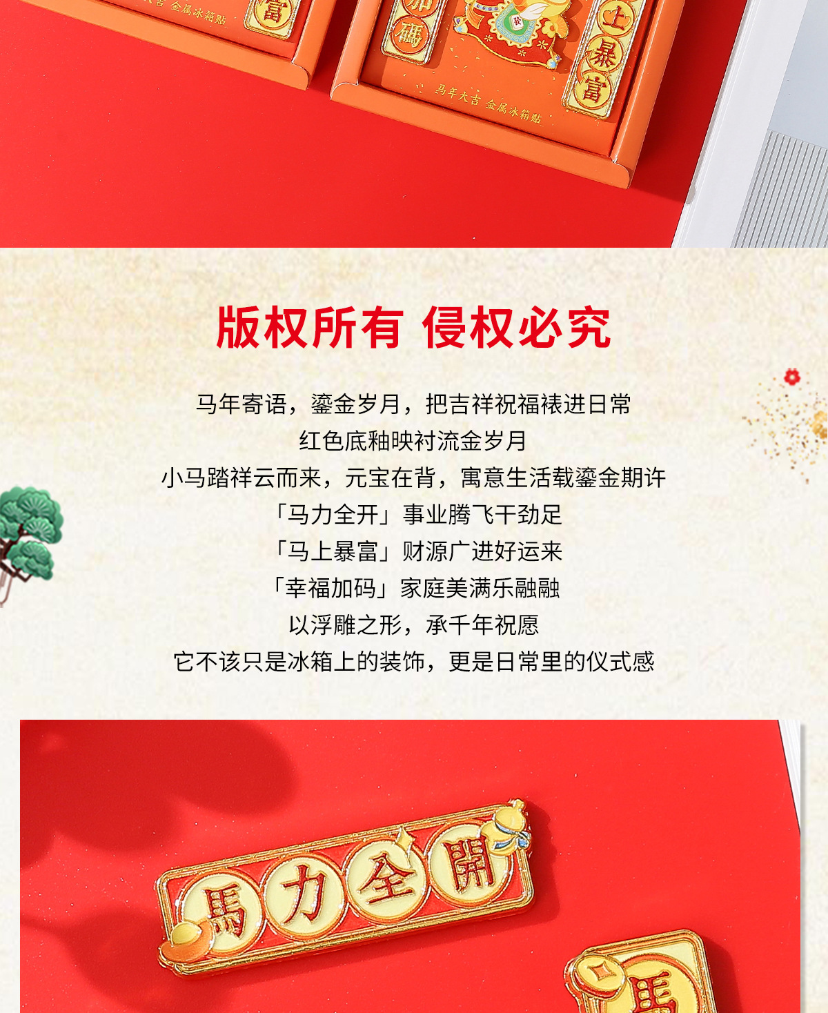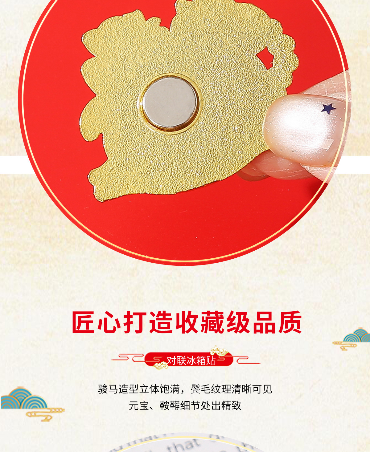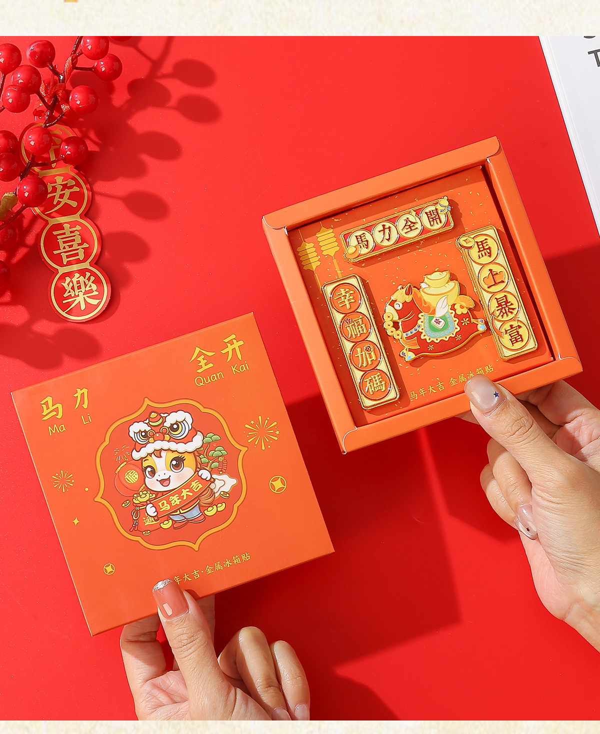 2026年新款马力全开金属冰箱贴马年大吉春节幸福美满马上爆富对联