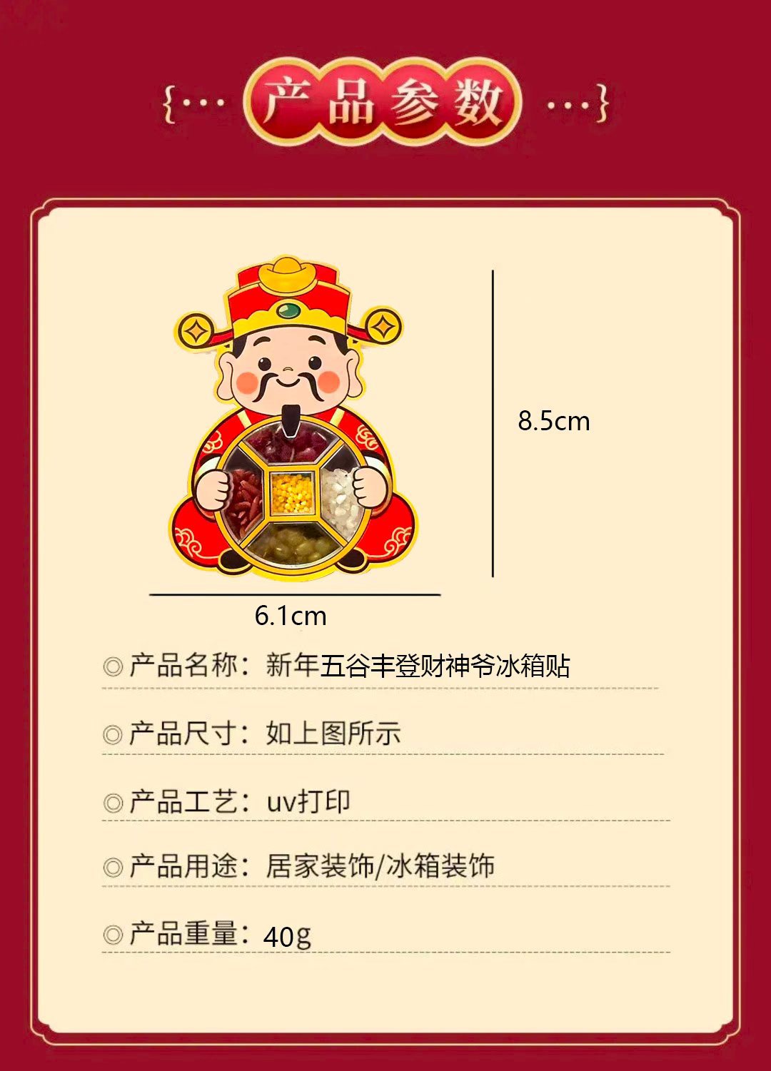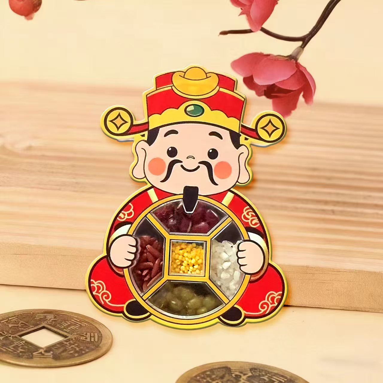 2026马年新年装饰搬迁送礼五谷丰登财神爷冰箱贴国潮创意磁吸摆件