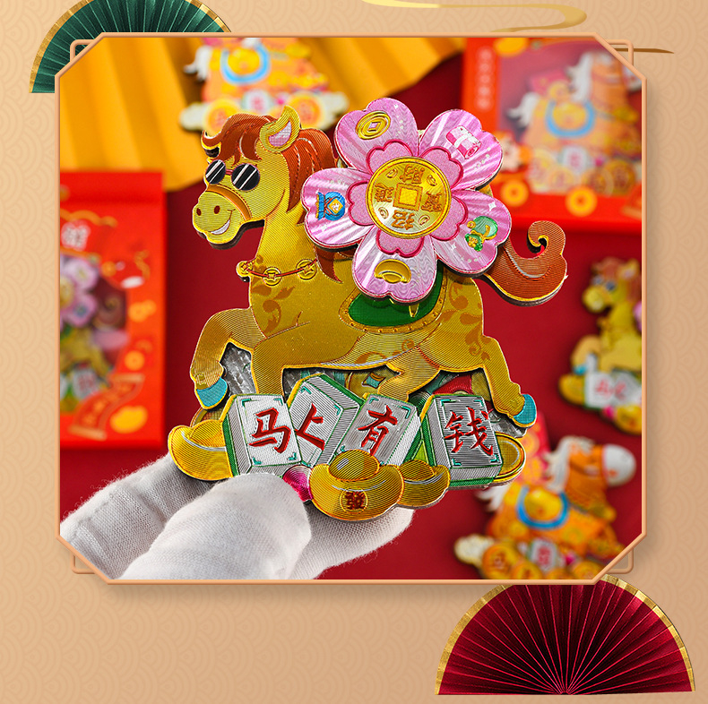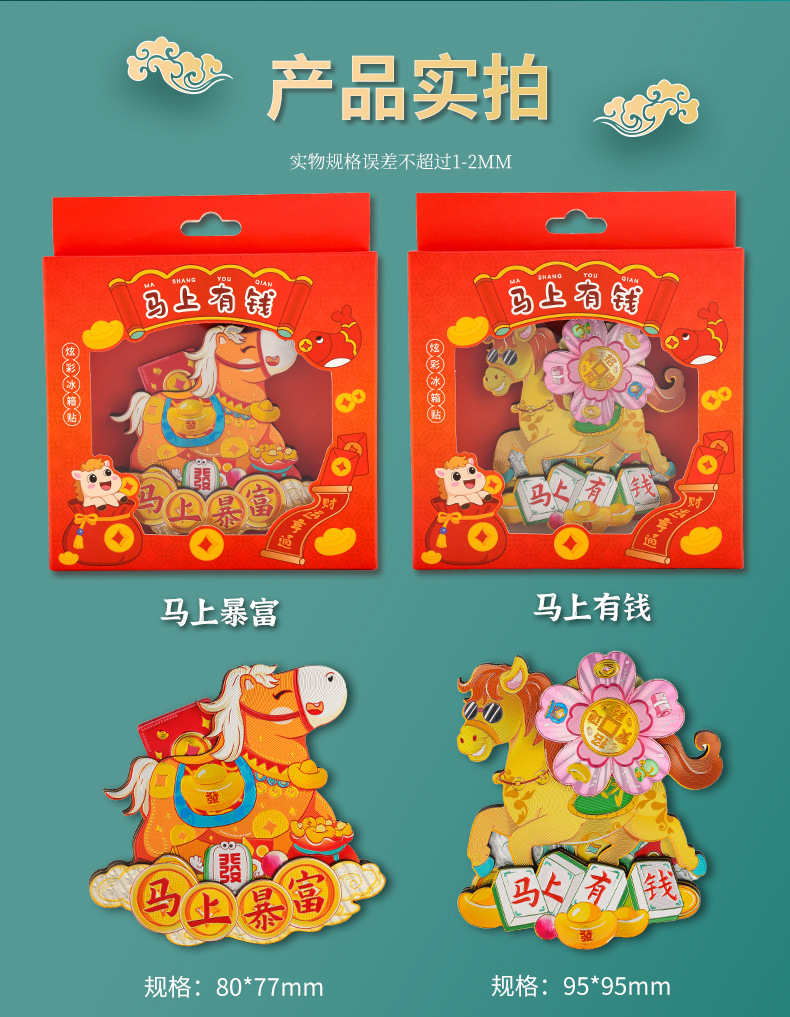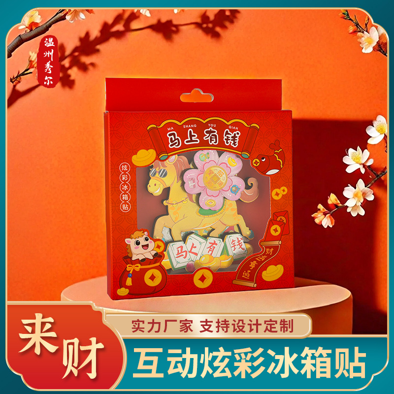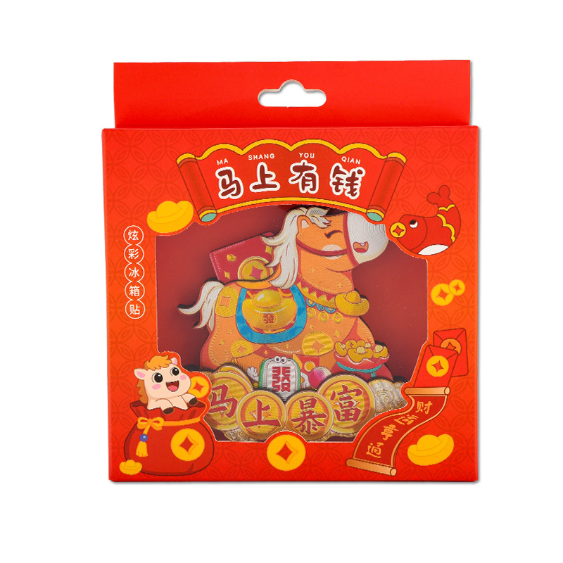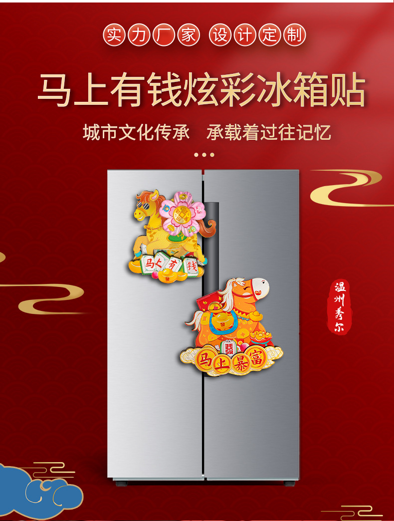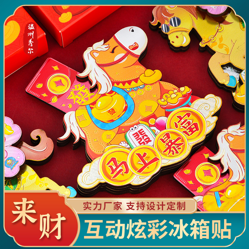2026新年马年冰箱贴马上有钱马上有福旋转炫彩磁性贴国潮礼品精品
