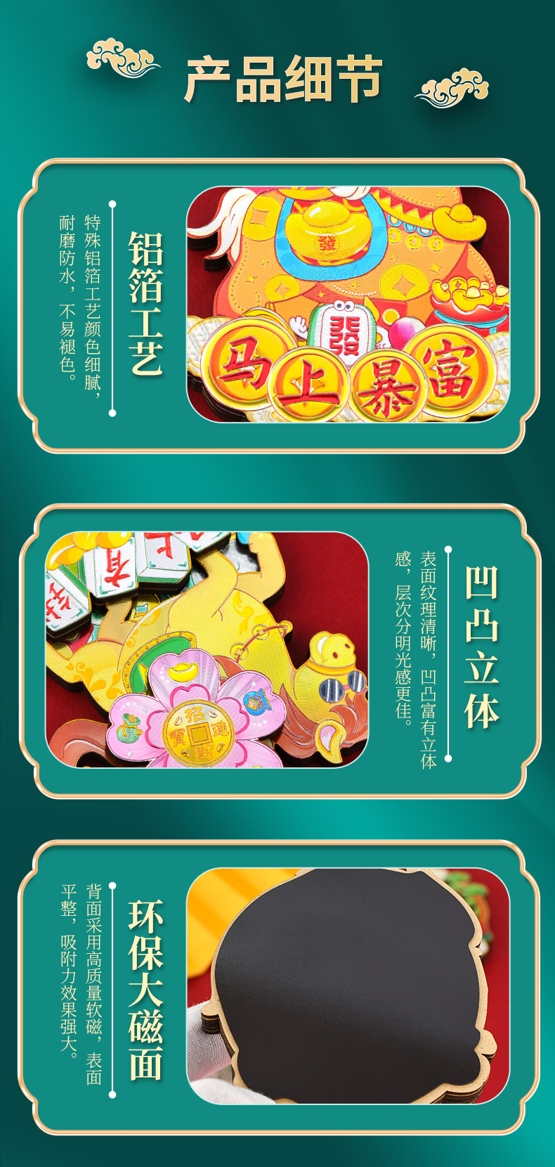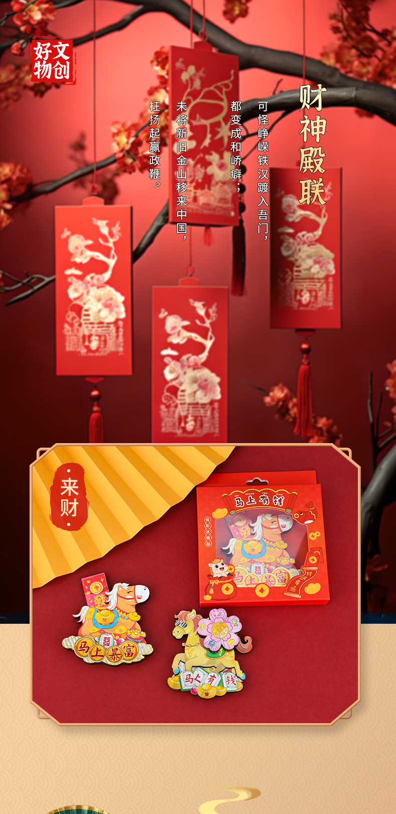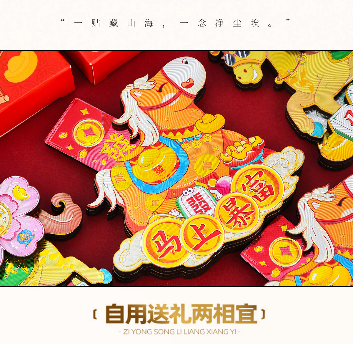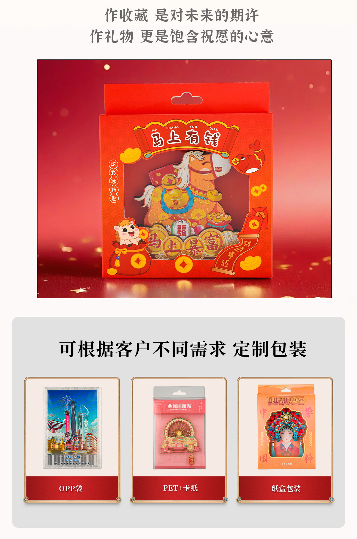 2026新年马年冰箱贴马上有钱马上有福旋转炫彩磁性贴国潮礼品精品