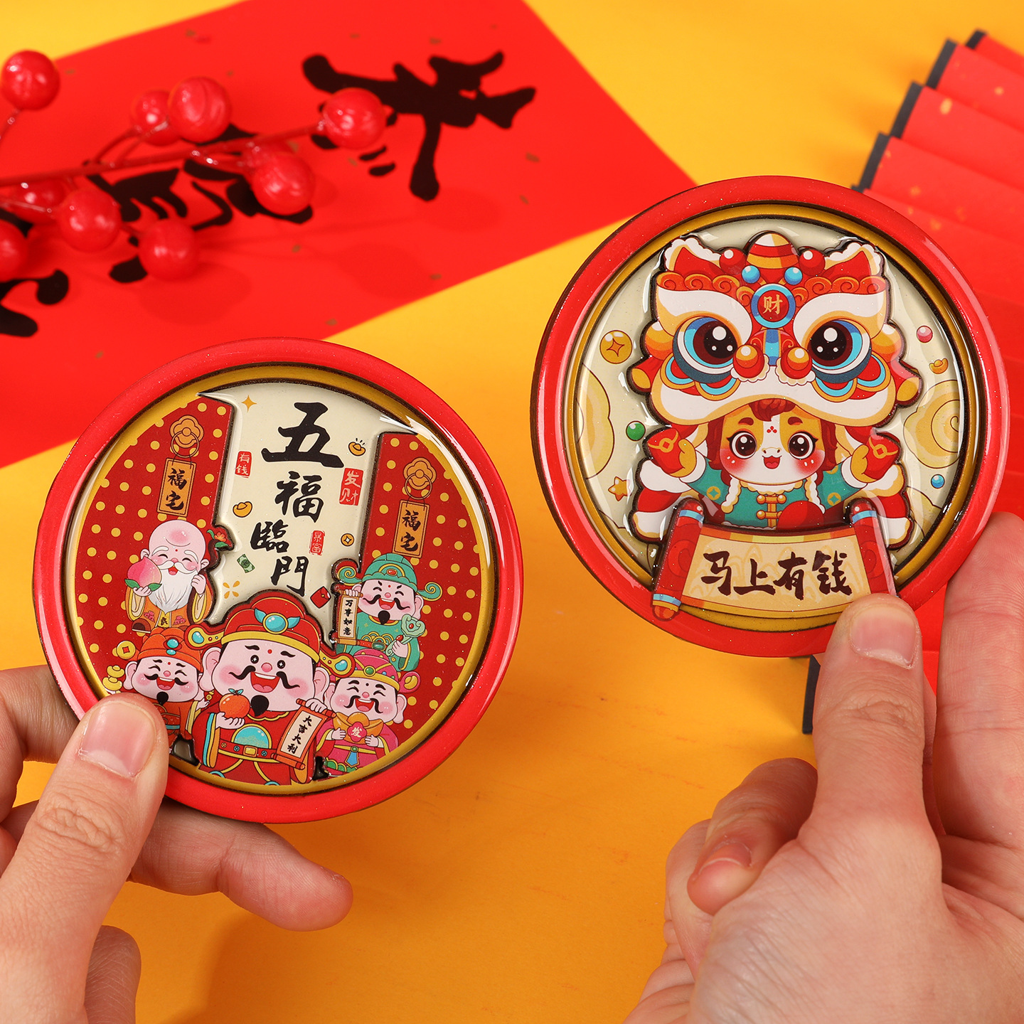 2026马年新款中国风财神冰箱贴旋转卡通磁吸贴国潮文创纪念品创意