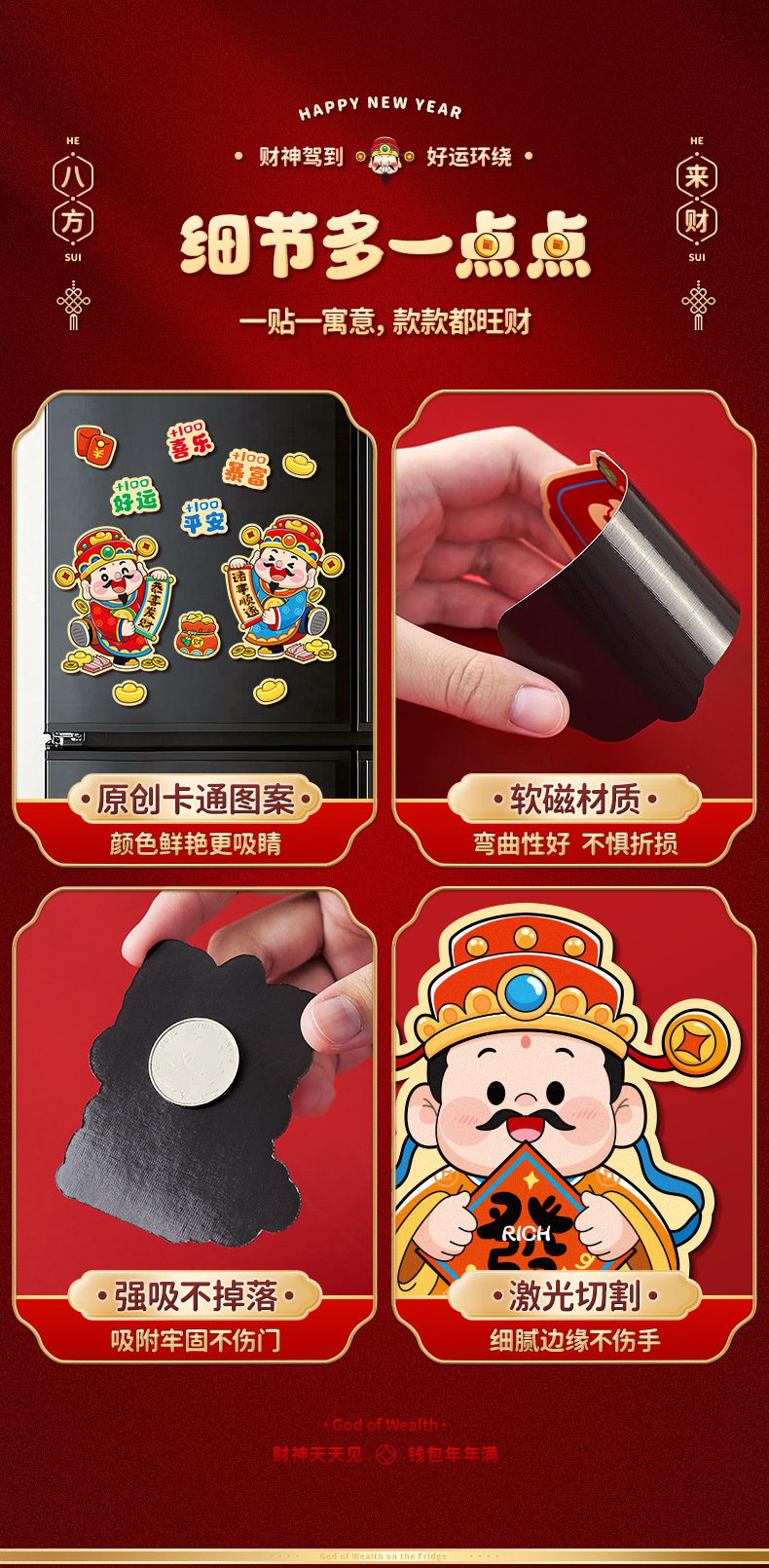 冰箱贴磁贴2026新款马年新年装饰品2025个性创意磁吸贴纸过年春节