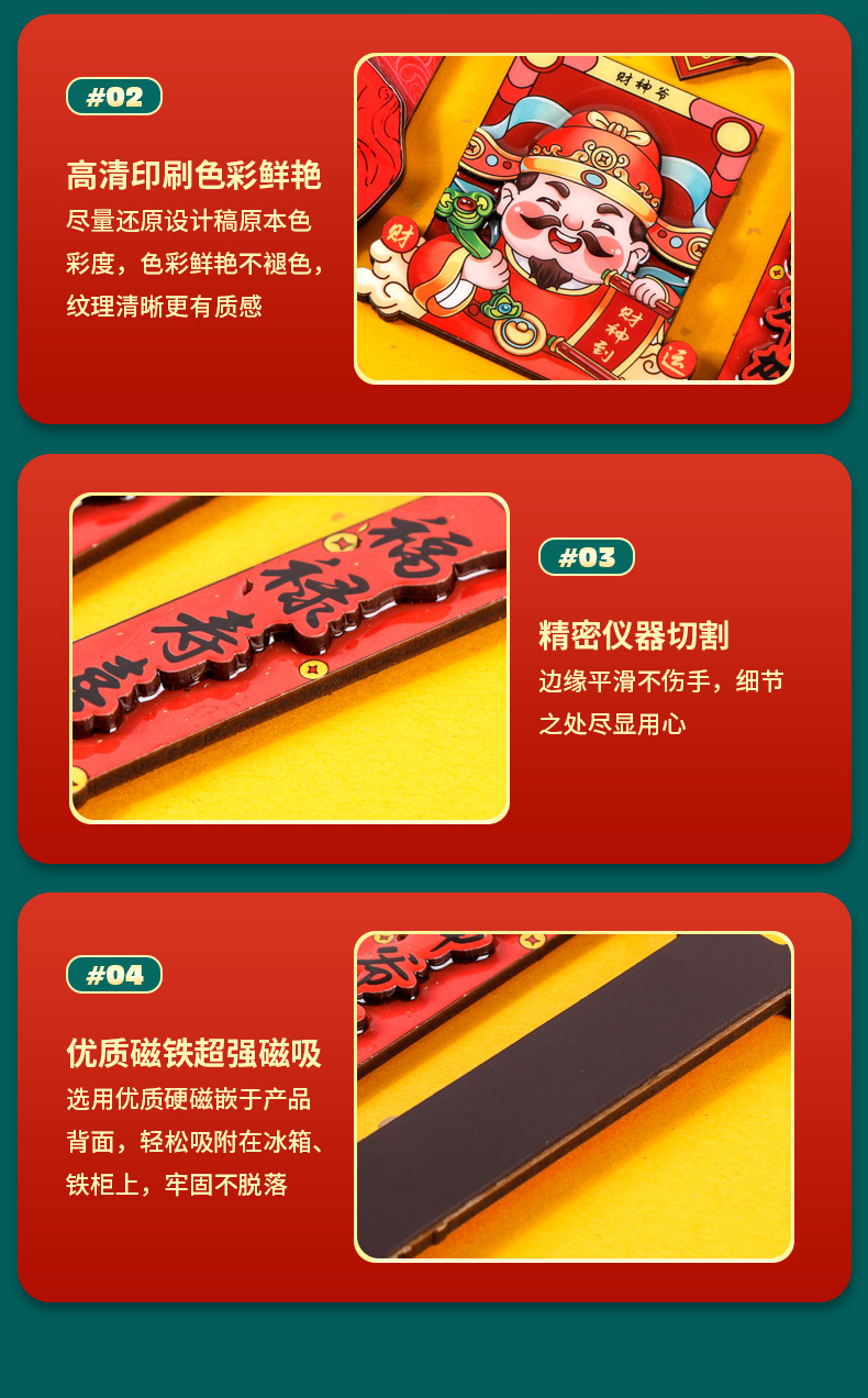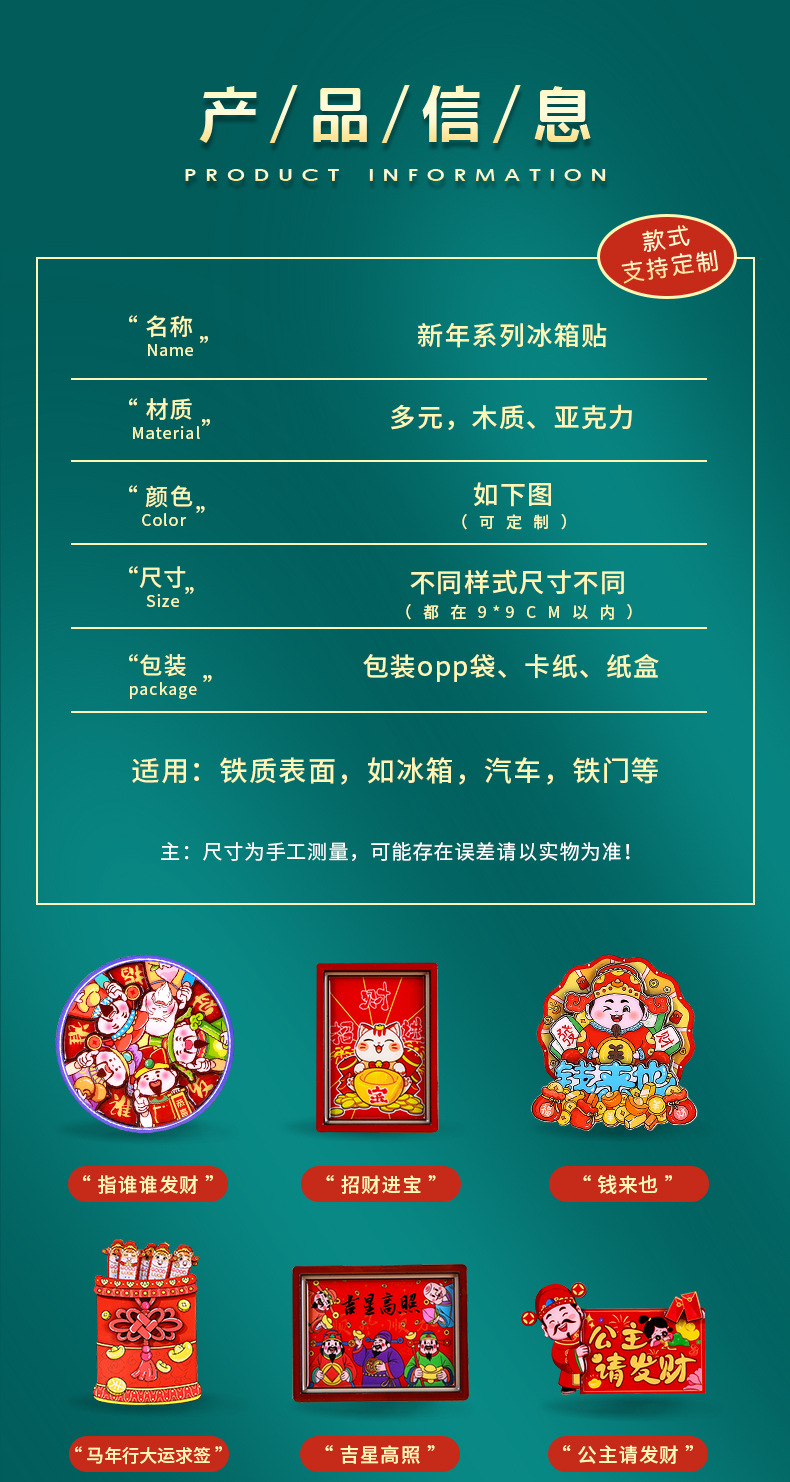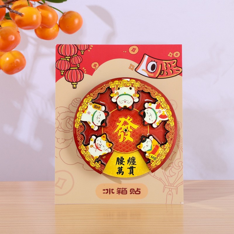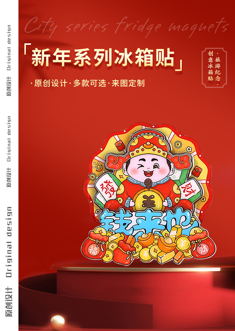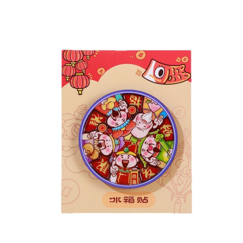 国潮系列五福吉祥金蛇献财木质滴胶冰箱贴文创礼品磁性工艺品现货